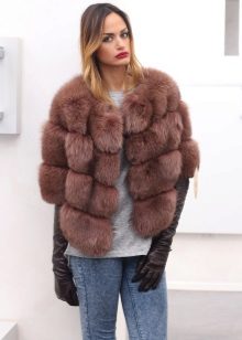 Short fur coats look great with narrow jeans, and from shoes you can choose ankle boots on the wedge heels or heels, and can be combined with boots.
