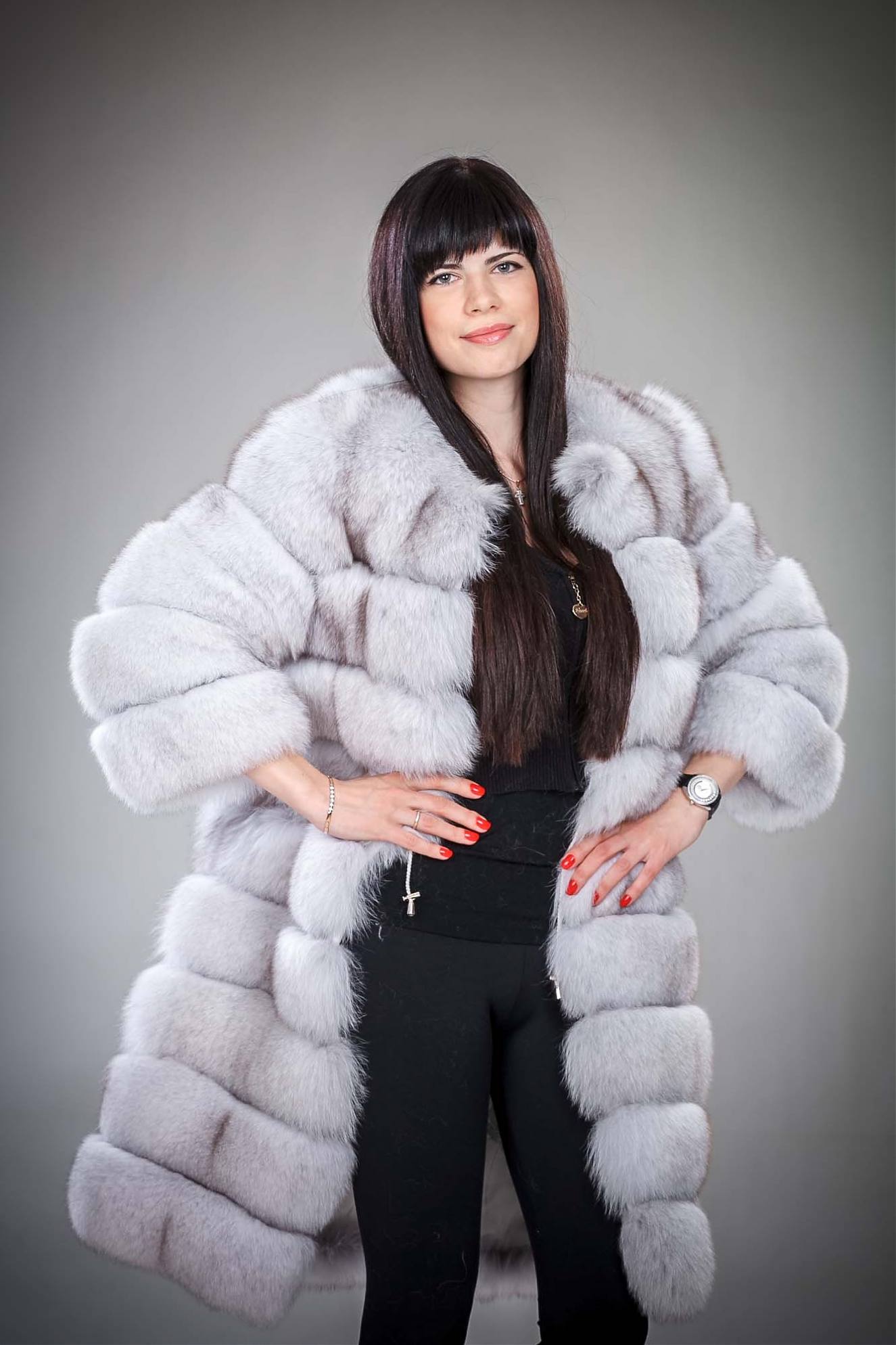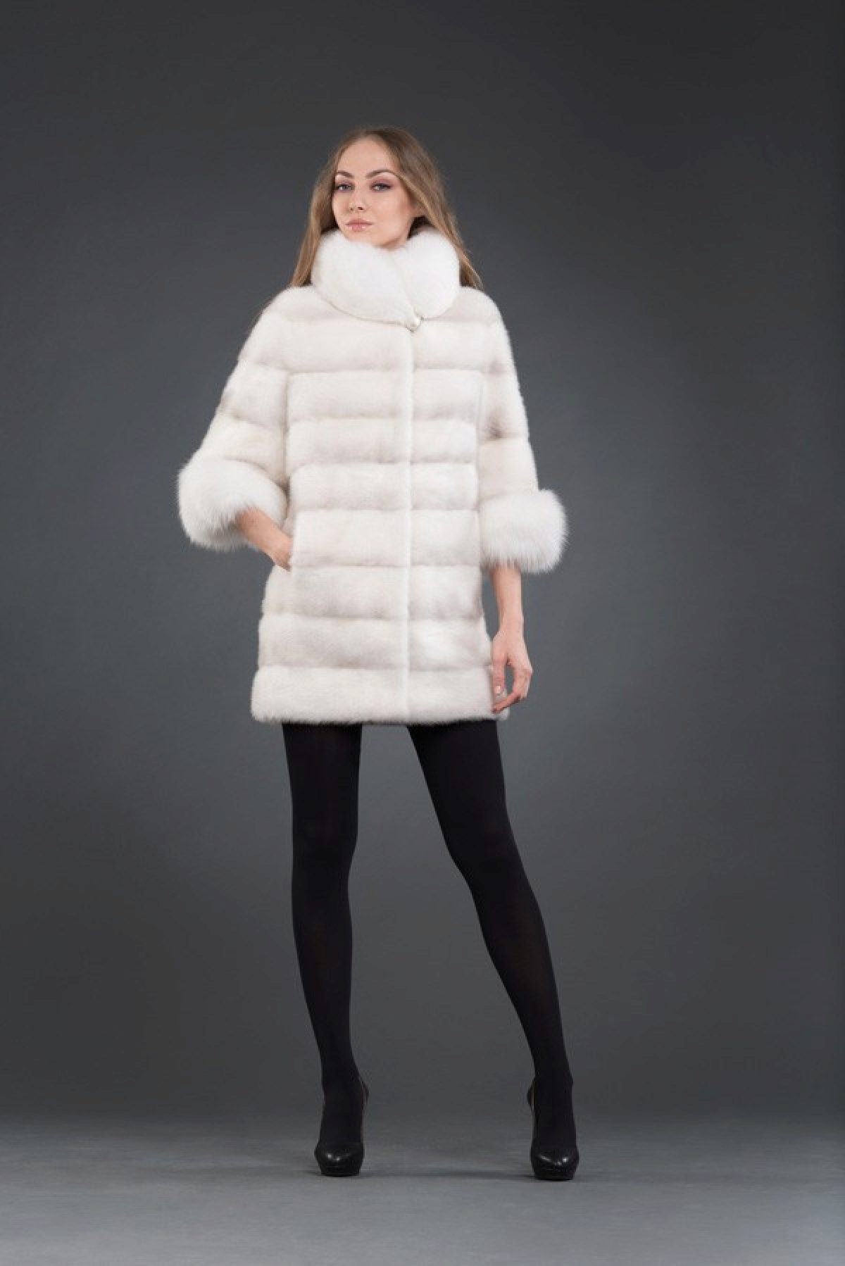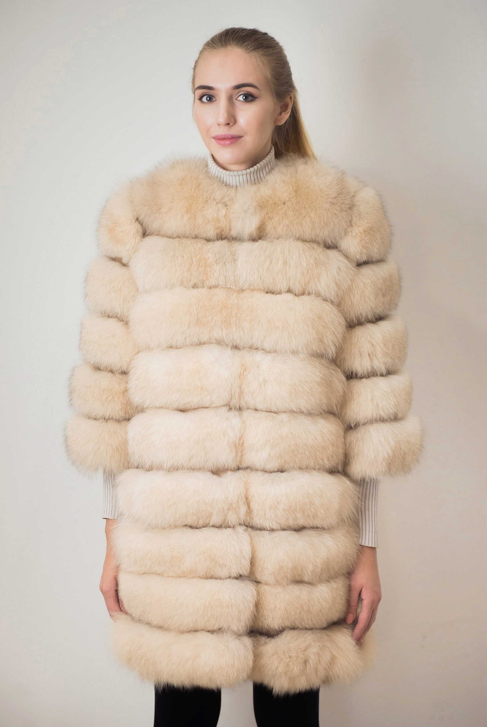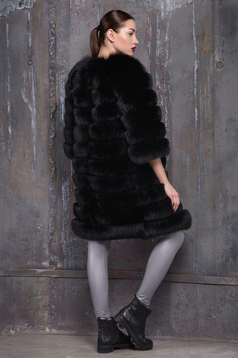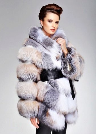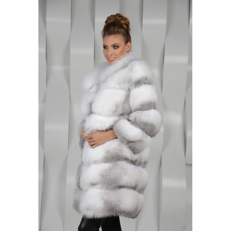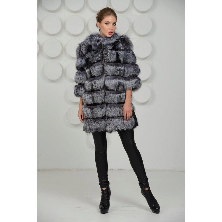 - A very practical fox coat of platinum color.