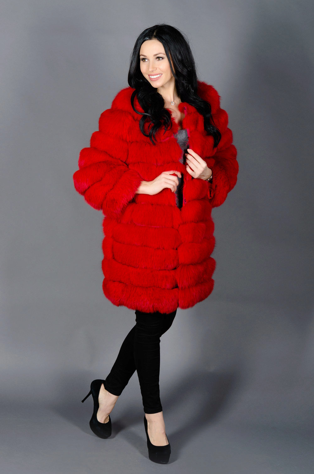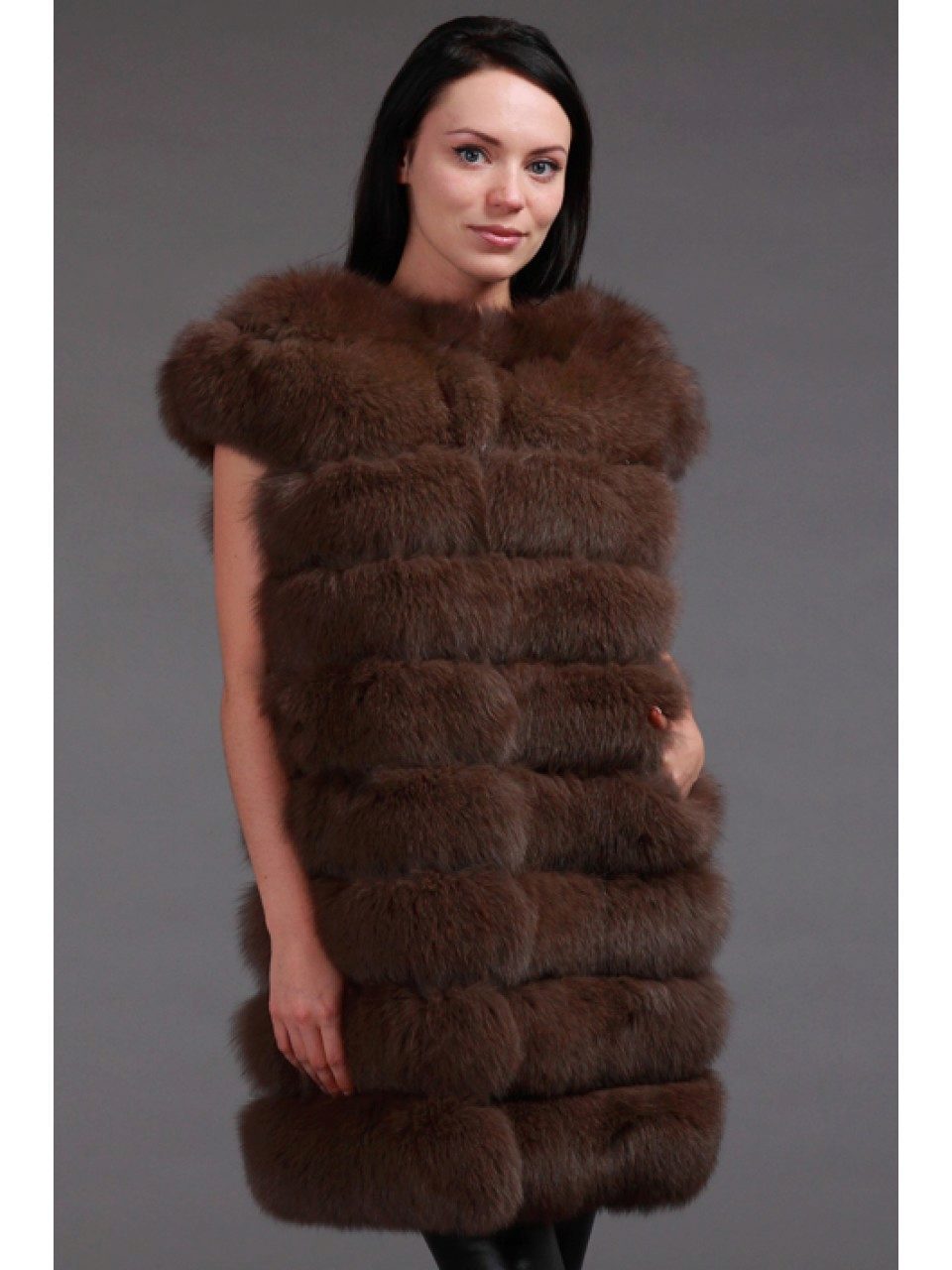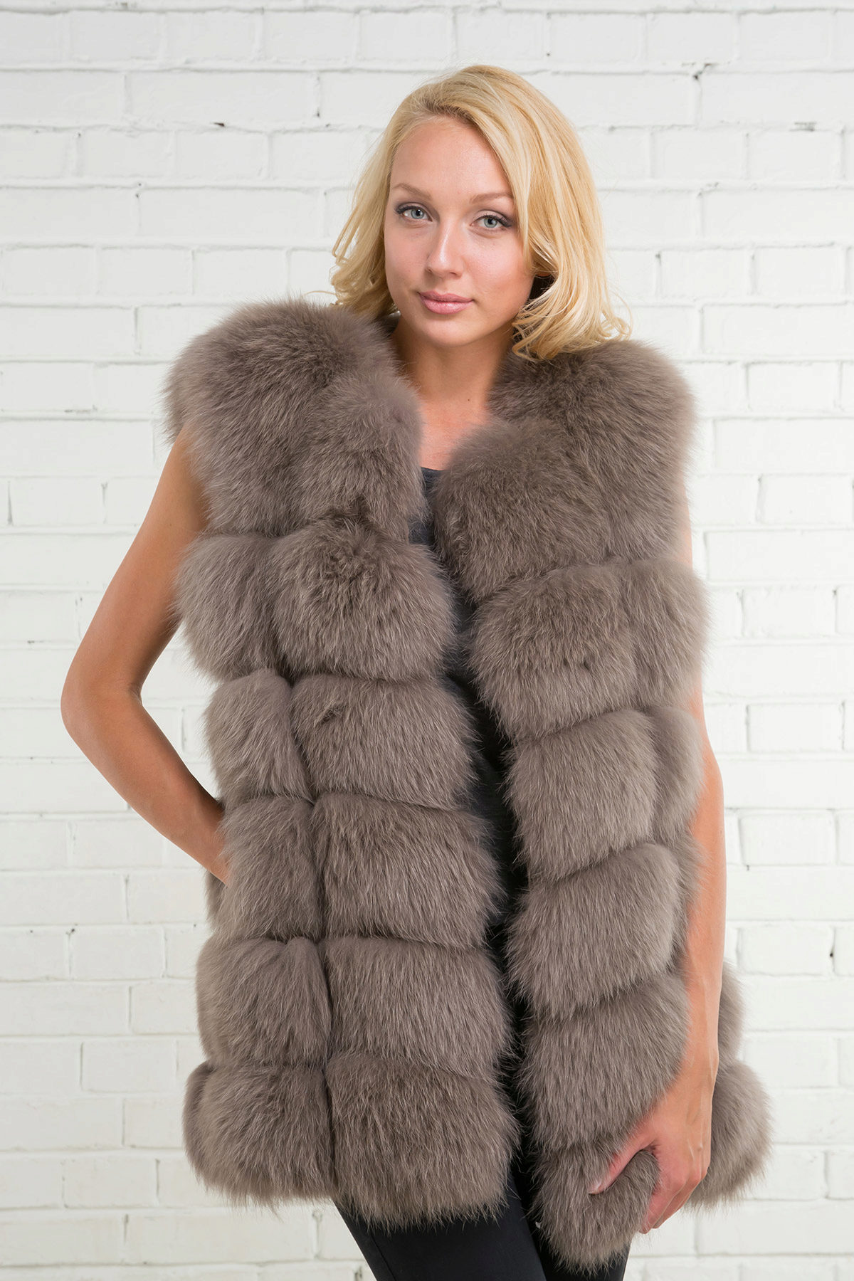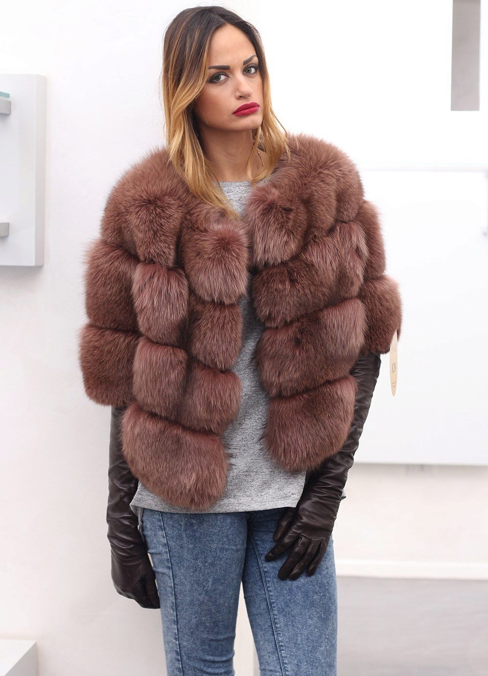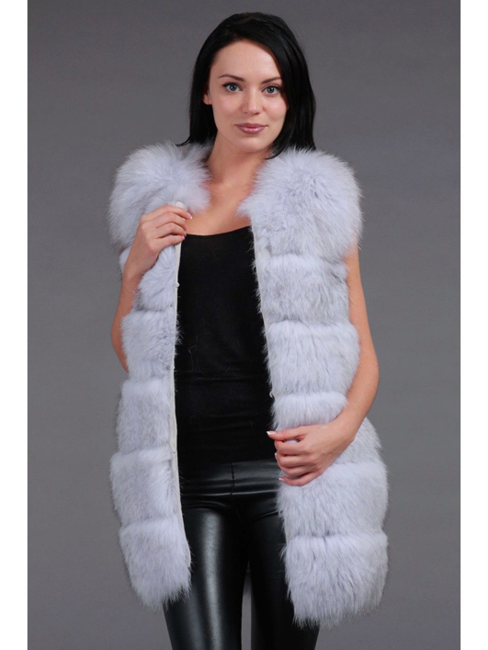 - A very practical fox coat of platinum color.