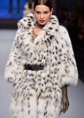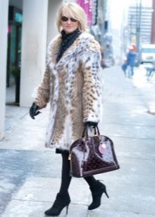 If you really want to have a feline coat, but you are constrained in money, you can compromise and buy a fur coat under a lynx. These are products from cheaper fur, for example, a rabbit or a raccoon, having a characteristic, artificially printed pattern.Such things can also be made of faux fur.