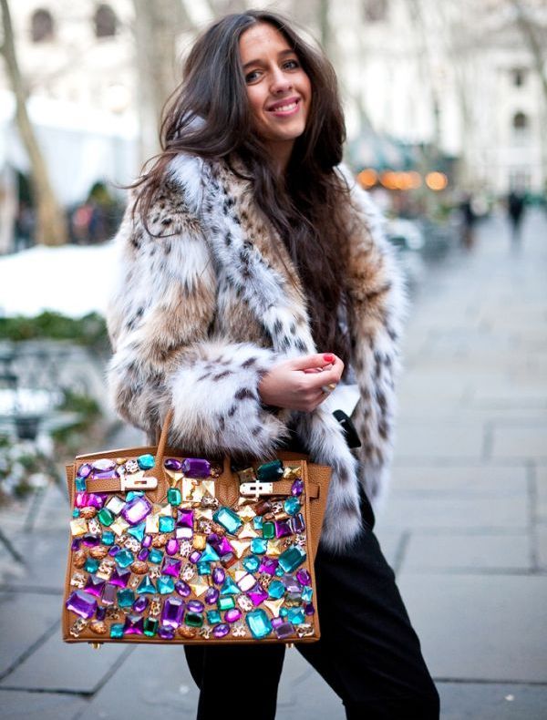 If you wear a fur coat during the day, choose a medium-sized black or brown bag. At the evening event, grab a miniature clutch to complement the stylish look.