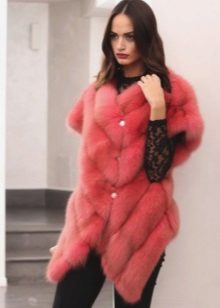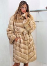 Such a fur coat does not consist of a whole web, but is sewn from individual pieces of material. The result is flat horizontal stripes. A similar pattern can be decorated with the whole product from fur, and only sleeves or a collar can be processed.