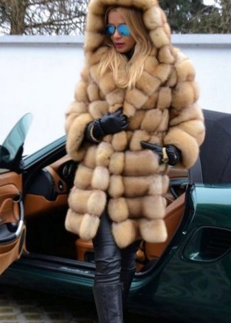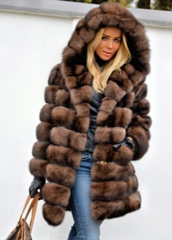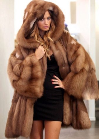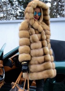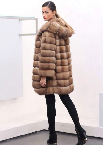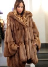 Fur coat of sable with a hood