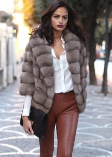But pants trousers strife. Elegant look with sable fur coat leather pants. It sounds provocative, but in fact it looks very organic. A monochrome turtleneck in tone harmoniously completes the look.