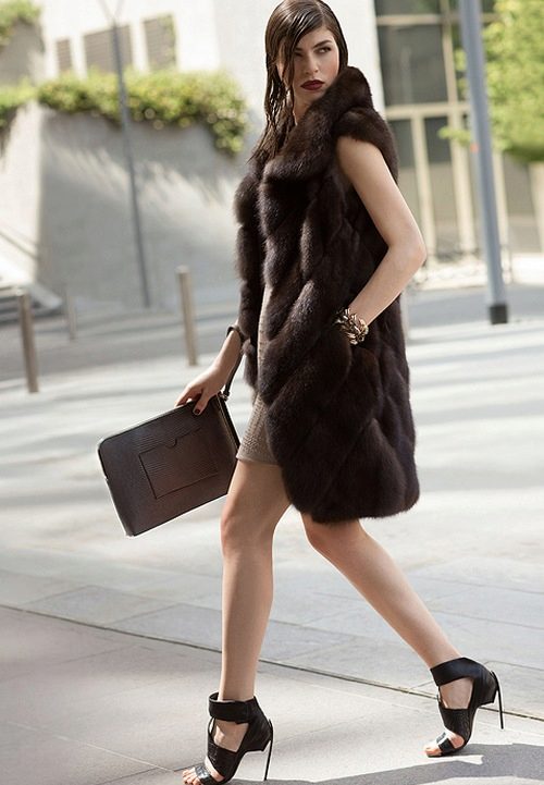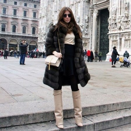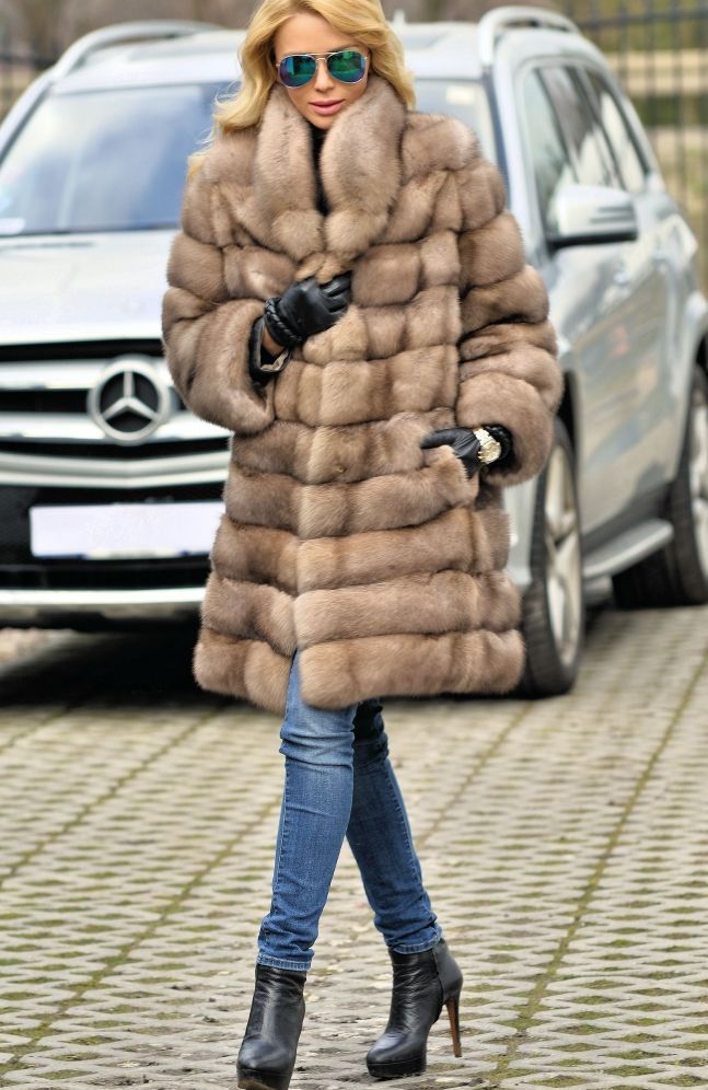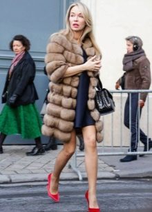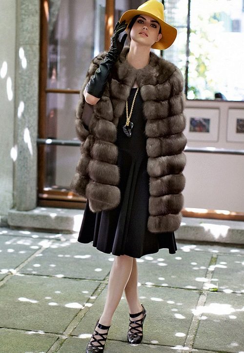 The rules for wearing a sable coat also depend on its color, but primarily on its length. Short coat is well suited for young and active girls. The ideal option for shoes would be platform boots or heels.