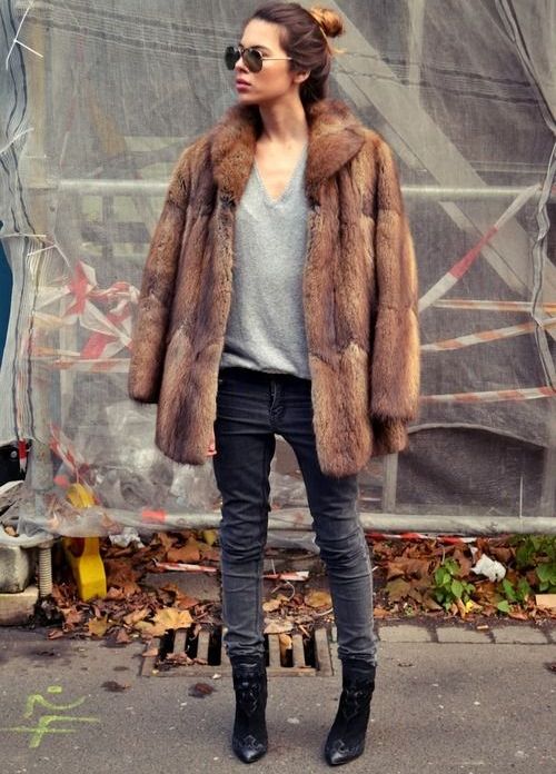 If you want to add elegance to your image, you can wear a pencil skirt or tight pants. Jeans can also be combined with a fur coat, but you need to fit them correctly into the image. In this case, you better consult with the stylist. Also, when wearing a short fur coat, the image will look better if your clothes do not look out from under the fur product.