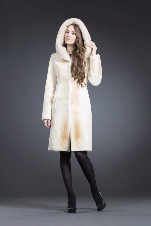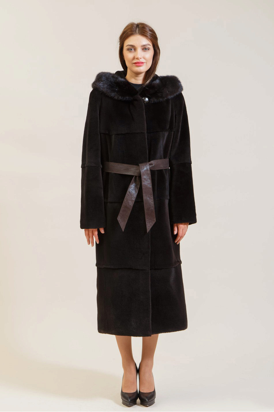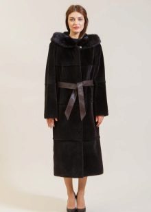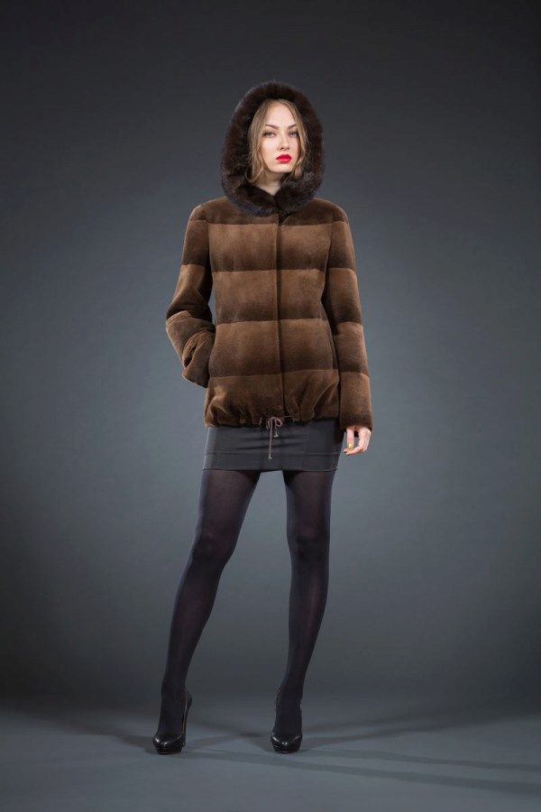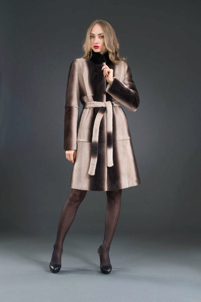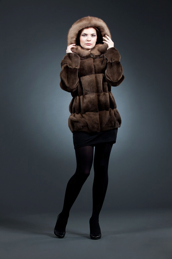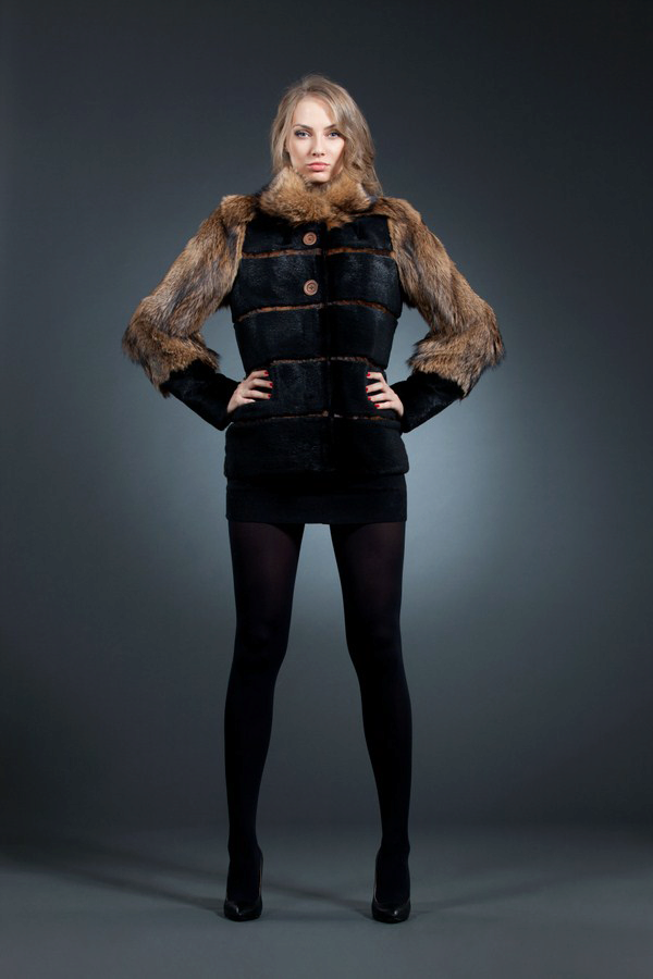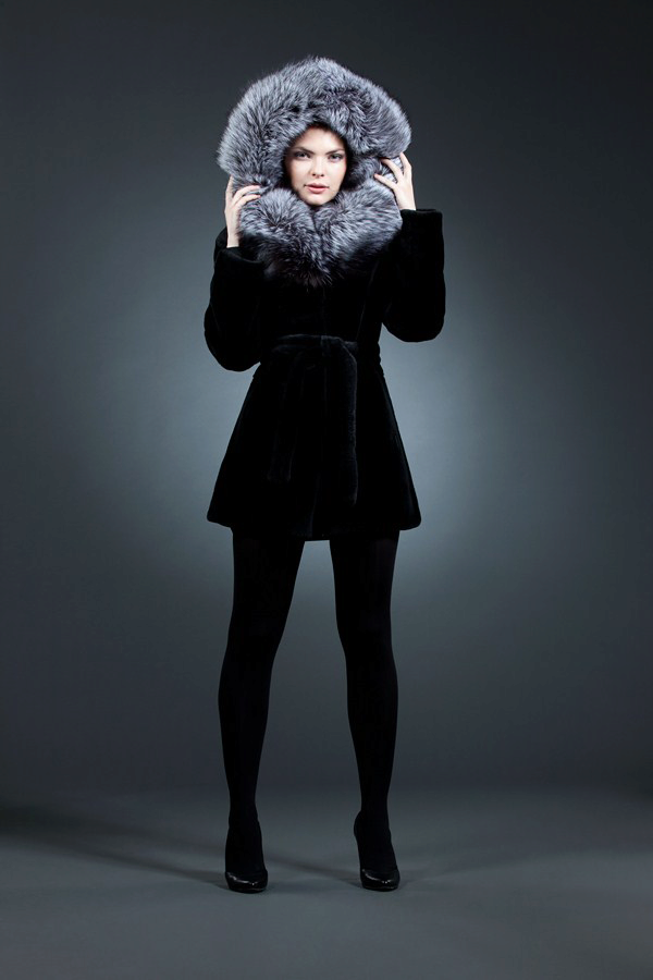 A gentle look, represented by a short fur coat of sheared nutria in several shades of “coffee with milk”. Waist girls favorably underlined belt from the same material. A chic hood from the fur of another animal adds practicality and brightness to the image. Ideal for young and spectacular girls.