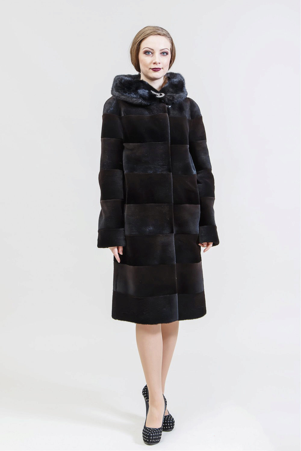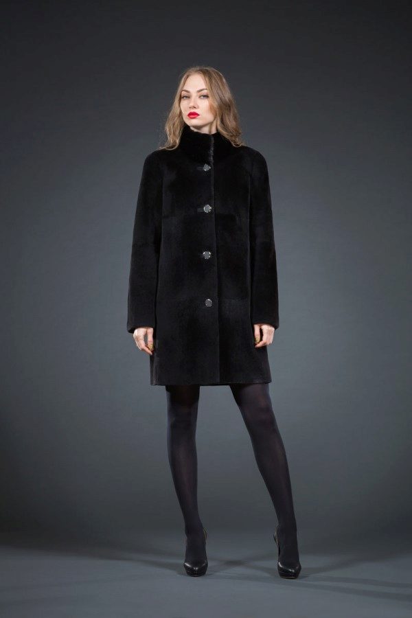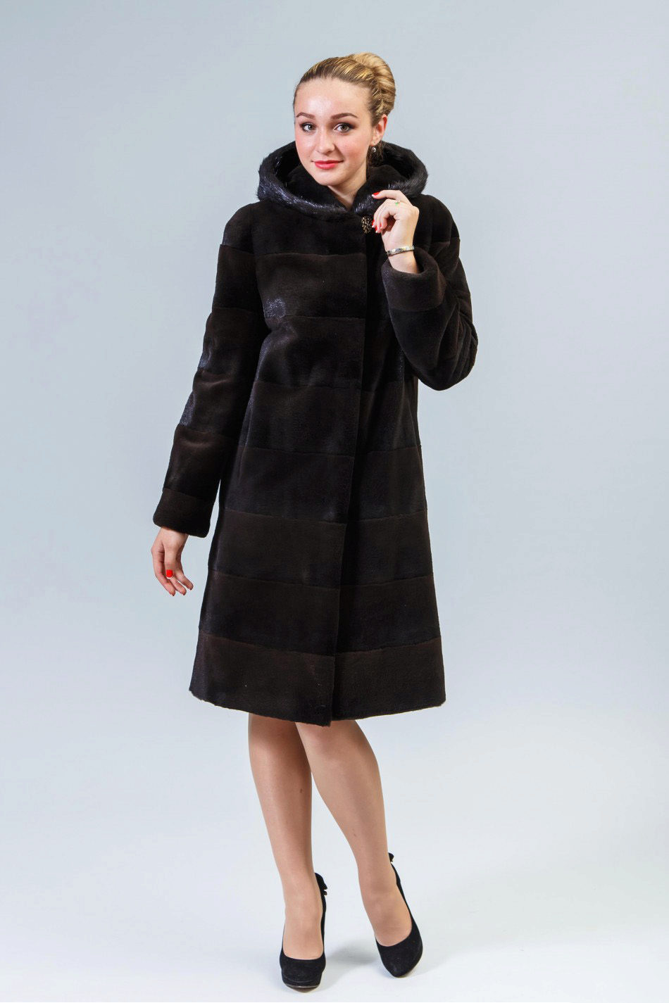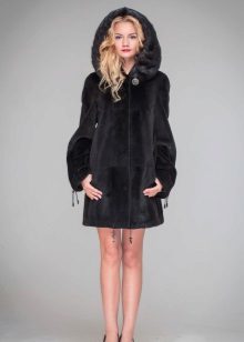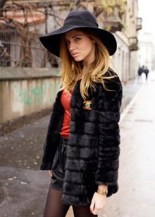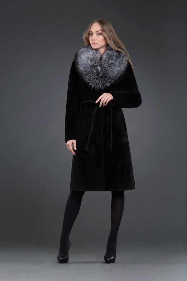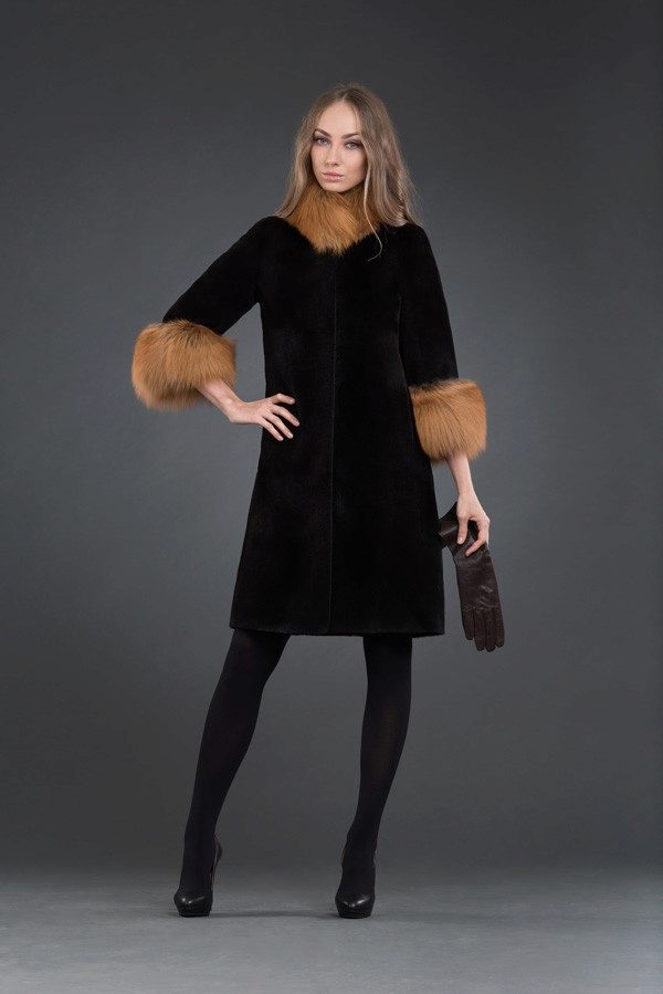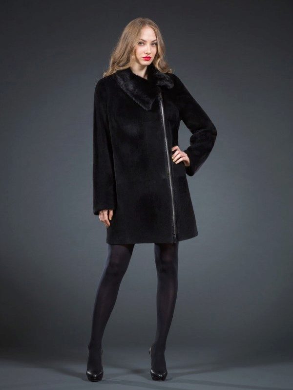 Successful winter look: popular this season is a “cross-section” made from sheared nutria of convenient length in classic black. The fur coat has no extra details, which makes it concise, and makes the look more refined.