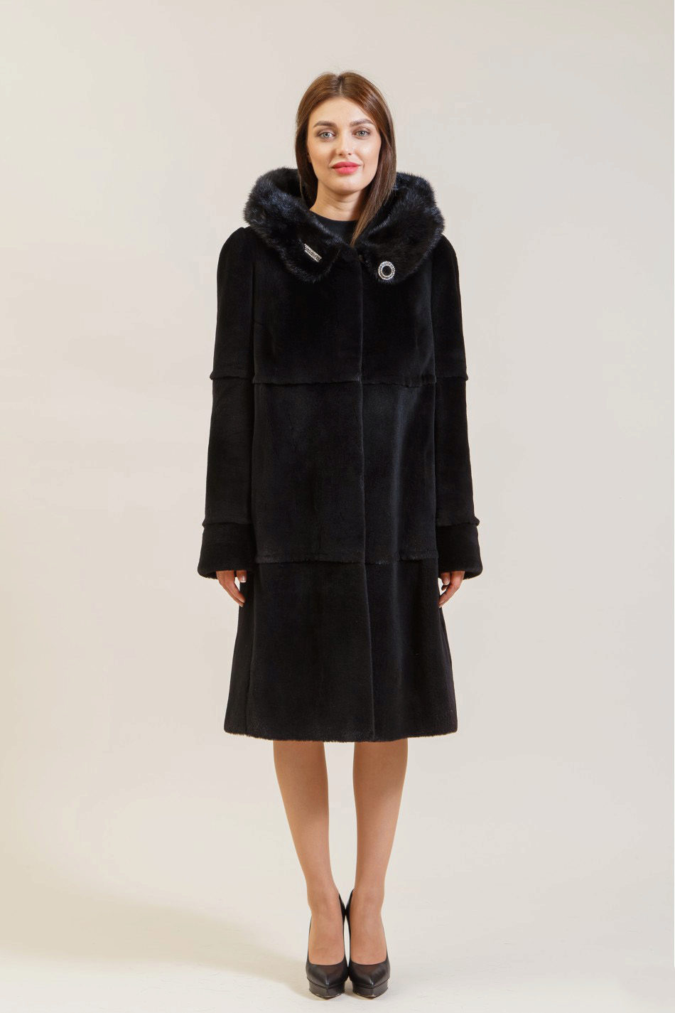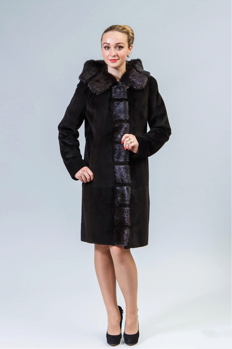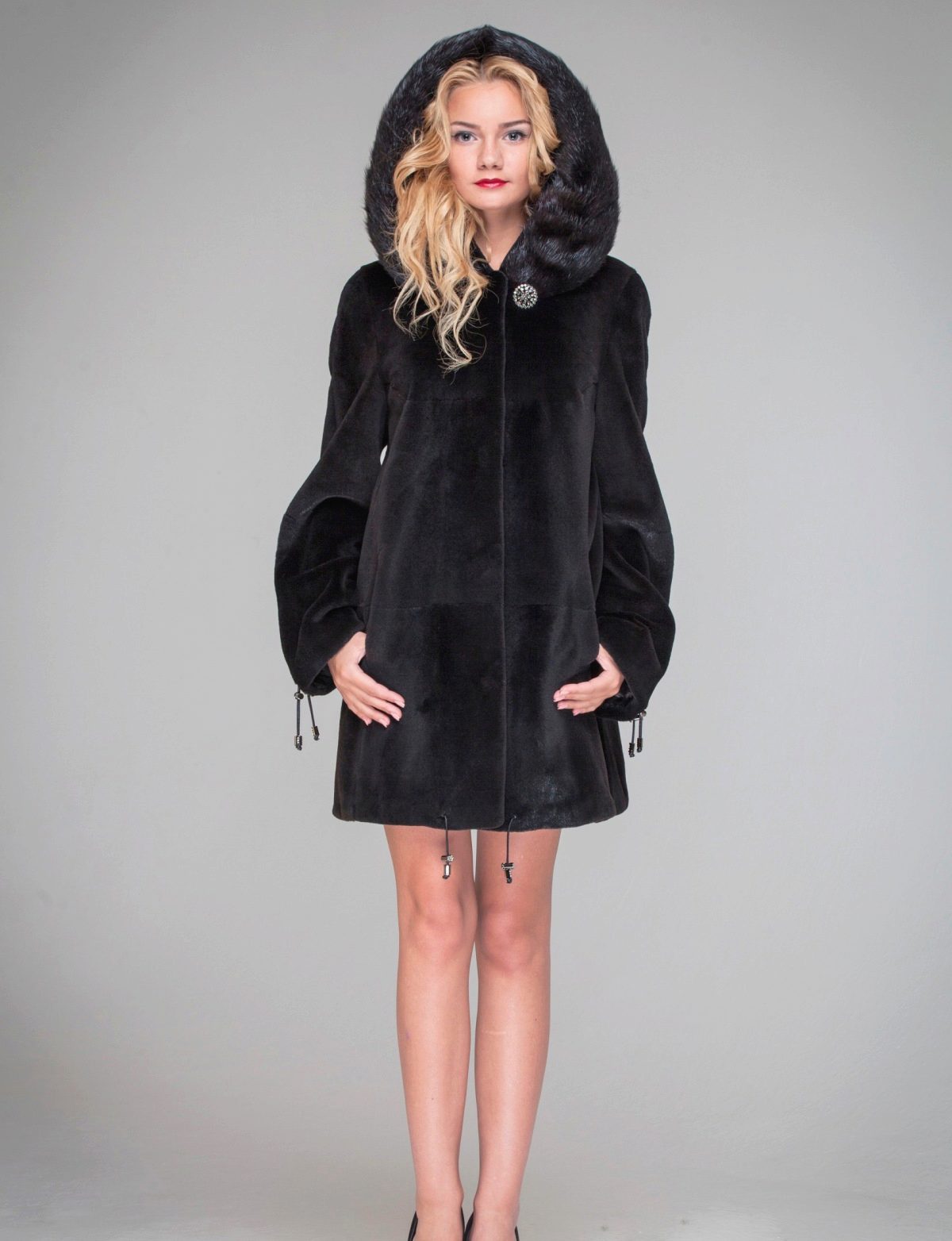 Successful winter look: popular this season is a “cross-section” made from sheared nutria of convenient length in classic black. The fur coat has no extra details, which makes it concise, and makes the look more refined.