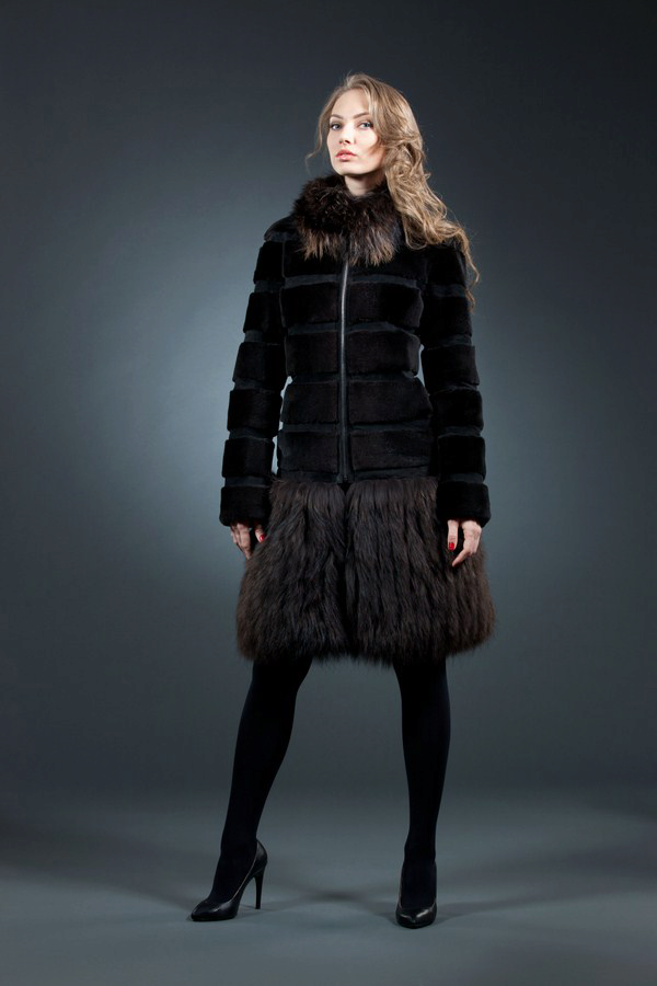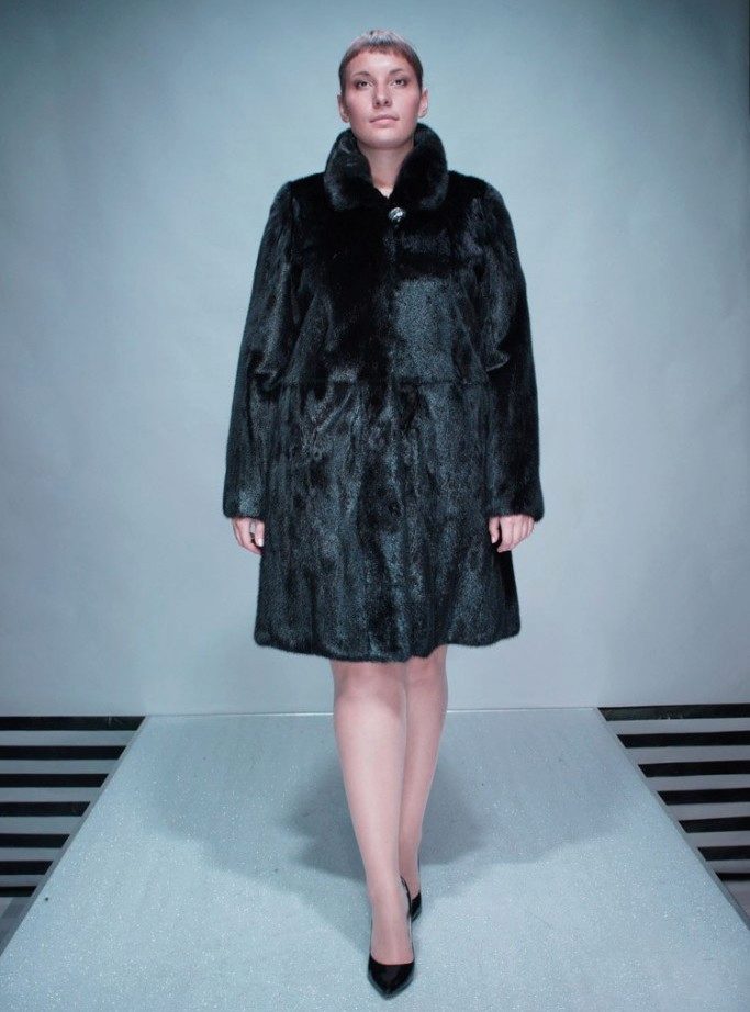 Fitted black fur coats from sheared nutria are perfect for full ladies, because the short dark fur visually reduces the volume, and the cut “on the figure” hides other shortcomings.