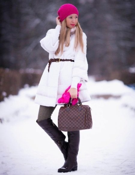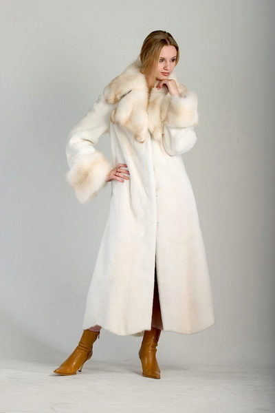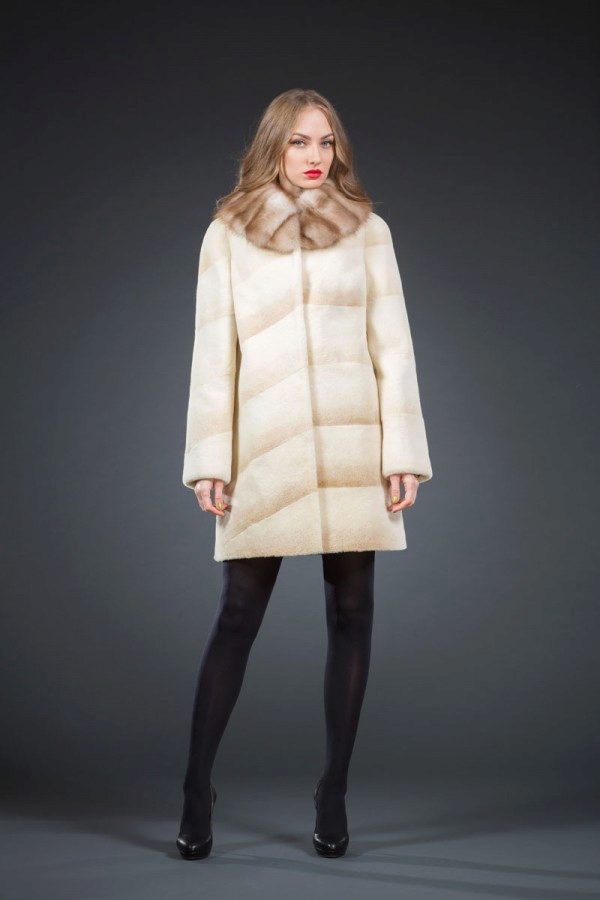 - White is the most popular choice among young girls. This shade is a classic, though not practical. White color refreshes its owner, makes it stand out from the crowd of passersby. White “cross-pieces” and short fur coats with a belt are especially popular;