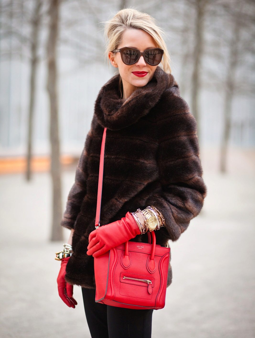 - try not to carry a handbag on a long strap with a fur coat, since the fur on the shoulder is wiped off from constant friction;
