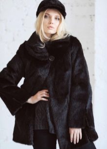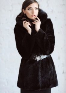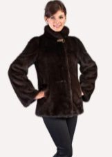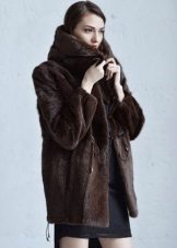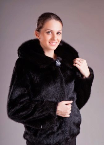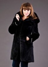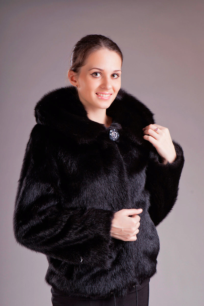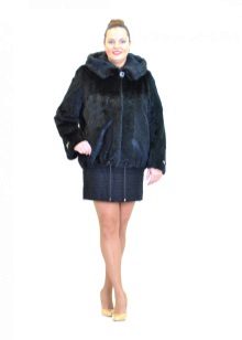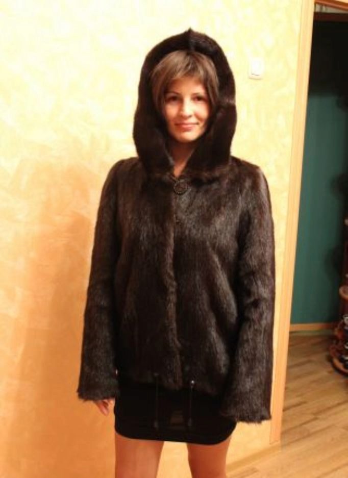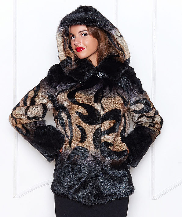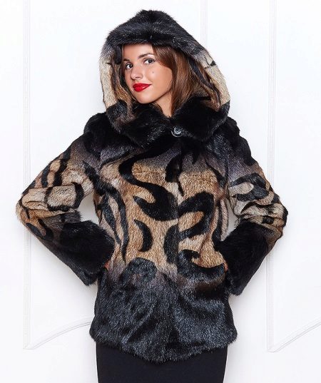 The original short fur coat of tinted woodchuck will attract the attention of young girls and avtoledi. This unusual product is complemented with a full-fledged hood and is decorated at the top with a large shiny button.