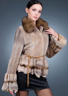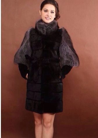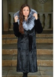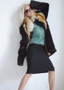 Leather, suede and knitwear - the main materials for finishing fur coats of marmot. Inserts of them are present in the waist, on the sides of products, replace the sleeves, hoods and collars. The combination of black shiny skin and sheared painted woodchuck is especially effective.