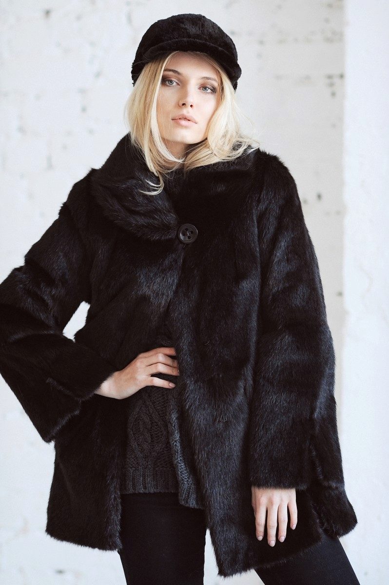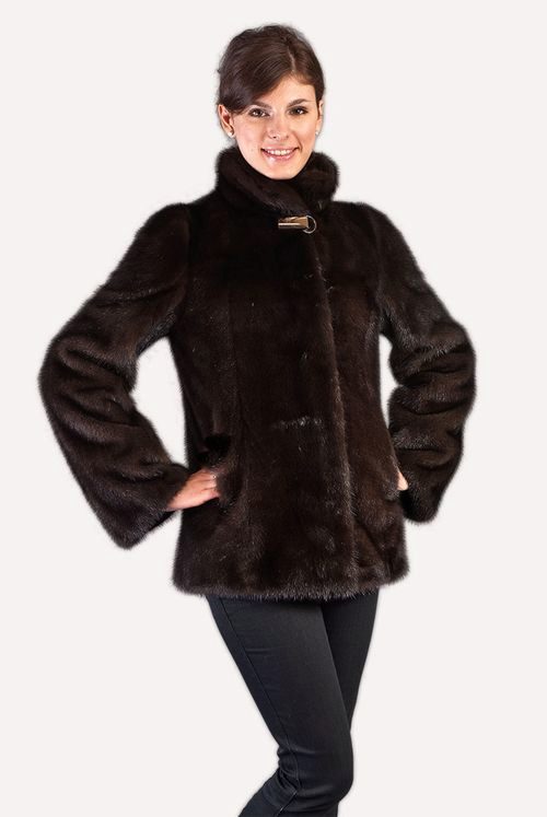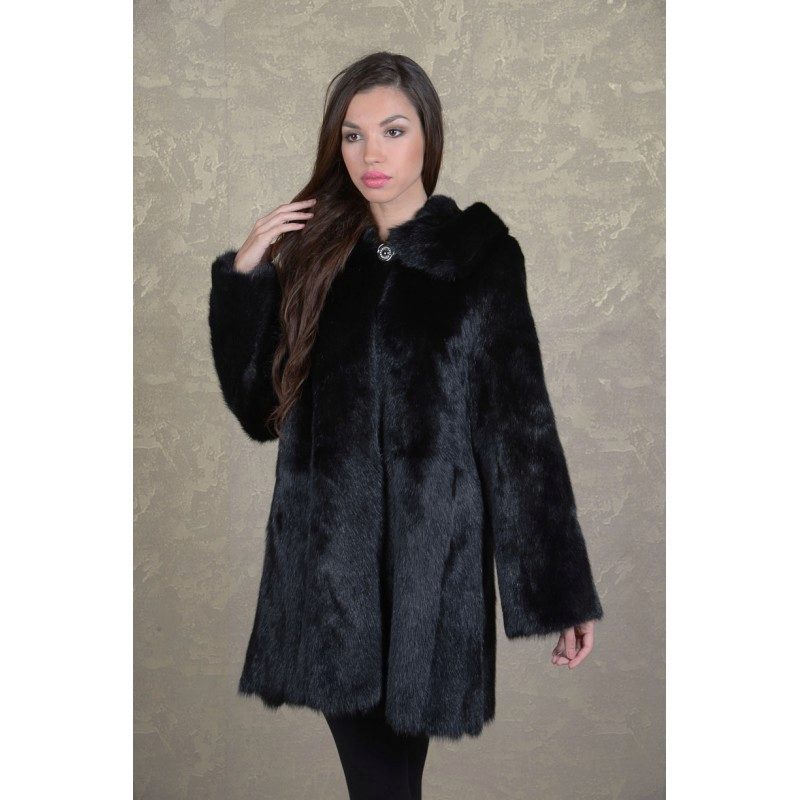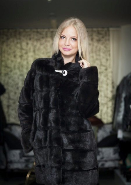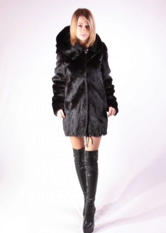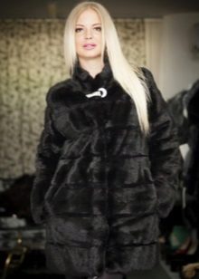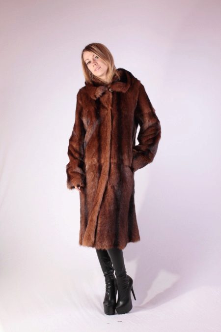 - Fur coat of marmot length above the knee is made of fur skins arranged transversely. Shiny smooth fur looks as good as mink. Full-length straight sleeves will protect your hands from the wind, and a graceful stand-up collar, decorated with a shiny buckle, will help keep your wearer's neck and neck warm.
