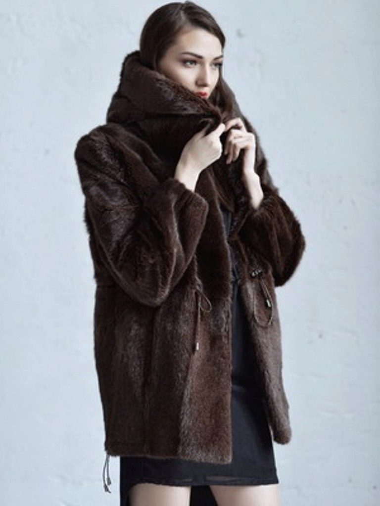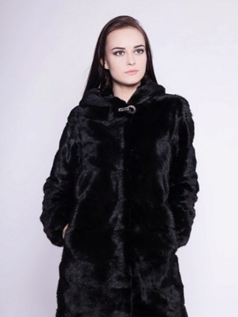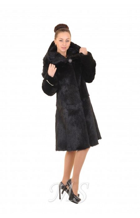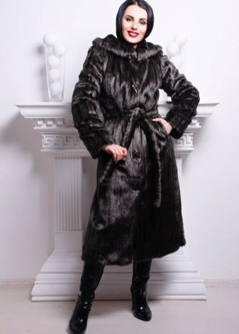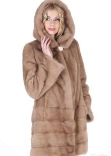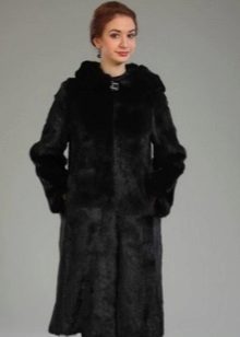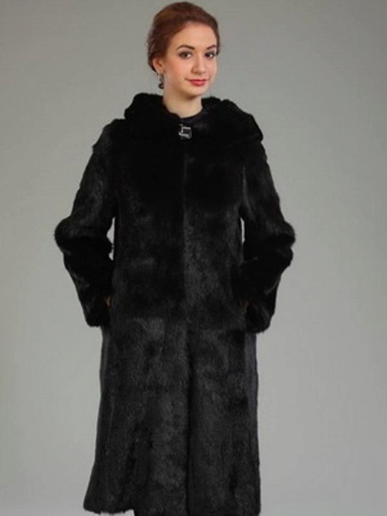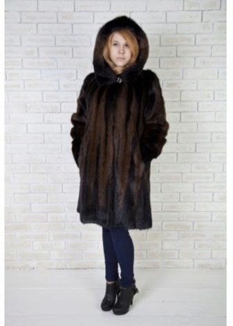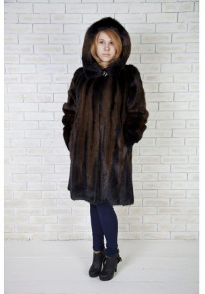 The classic straight style coat of woodchuck attracts an exquisite chestnut hue. The wide hood can be used for its intended purpose, and it can be left lying on its shoulders, straightening like a shawl. If desired, such a fur coat can be worn with a fur belt, emphasizing the waist.