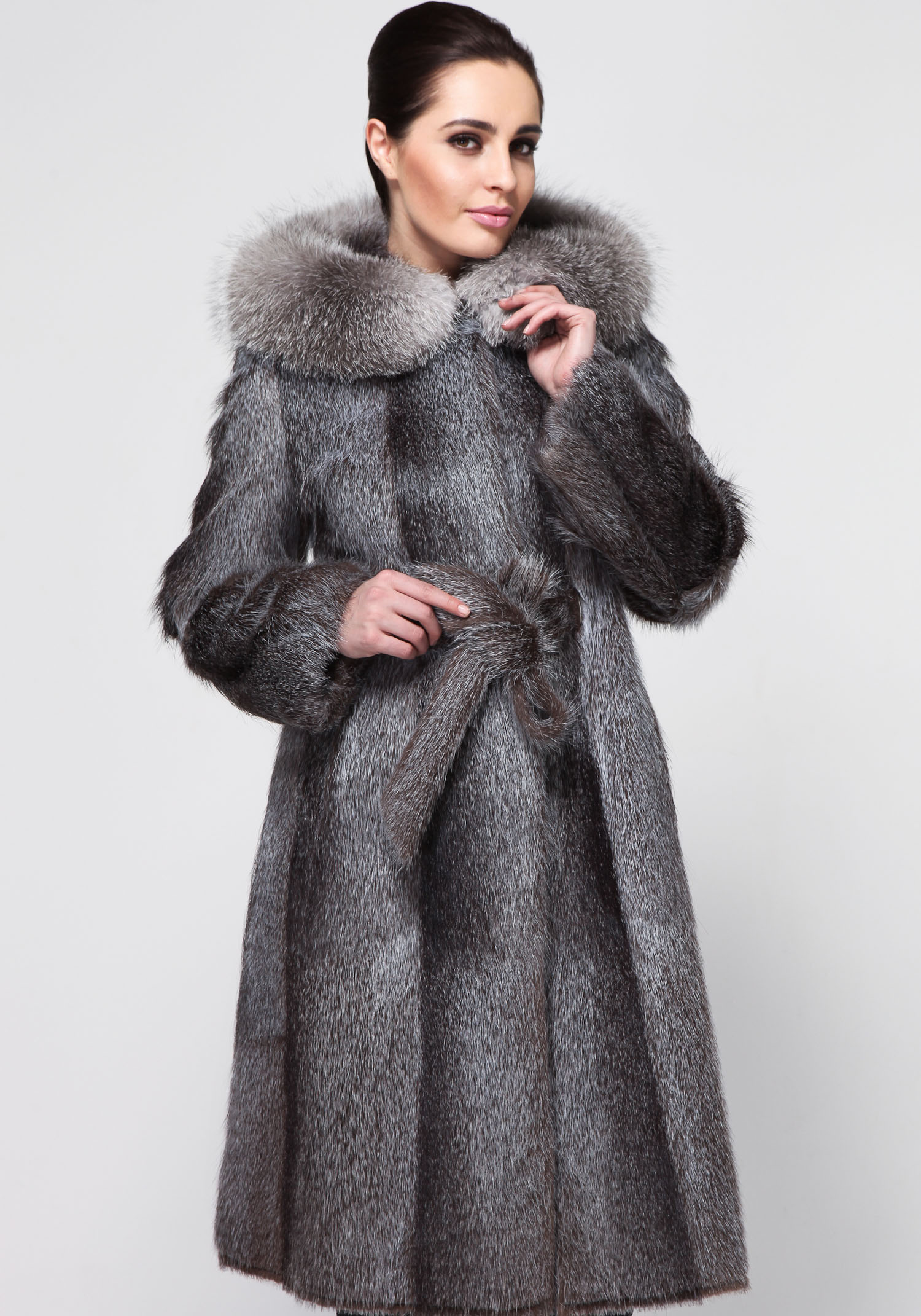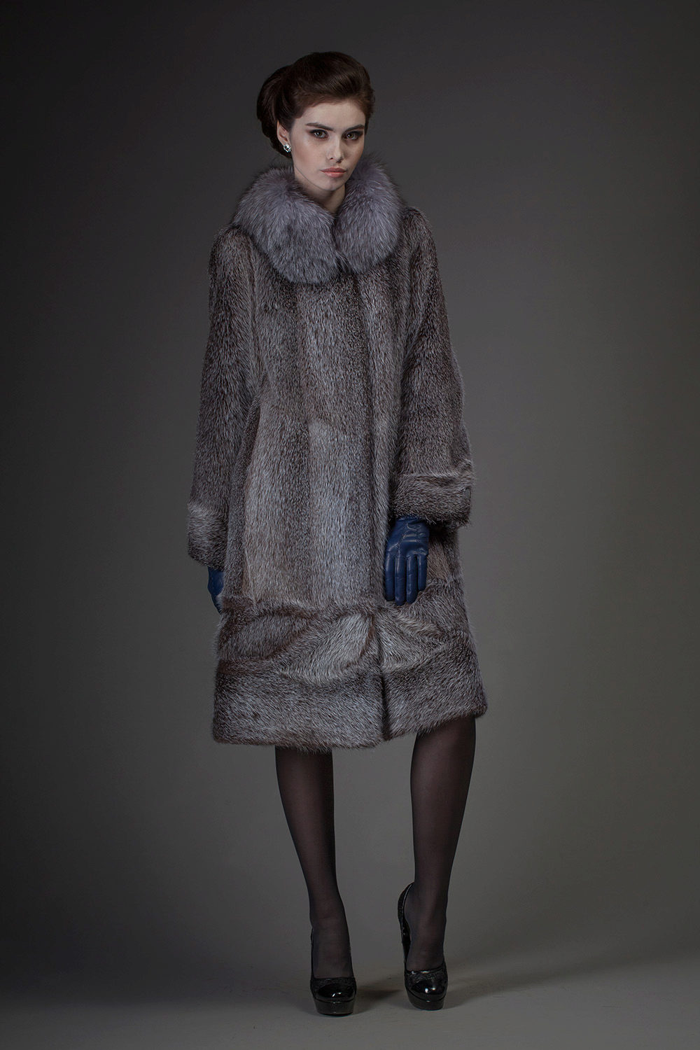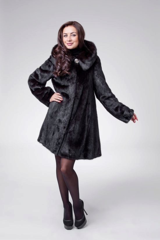 A trapezium fur coat or otter coats will look great, the collar of which is made of similar fur - for example, a beaver.