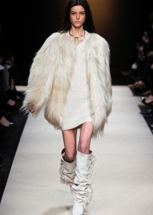 - According to many stylists, shoes in combination with a fur coat must be feminine and heeled. But in the case of a fur coat made of yak fur, other models are also suitable, for example, on a small platform.