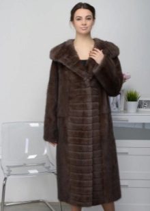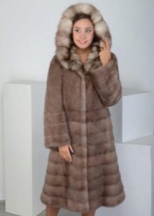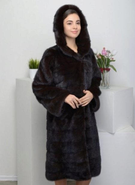 The image of the impregnable snow queen is the result of wearing an elongated Shakira model with a mink hood. Such a thing will emphasize the status and sophistication of the hostess, distinguish her from the crowd of black and gray outerwear. Practical this model can not be called, so the owner must carry the owner to an important meeting personal driver. Ideal product for going to ceremonial events.