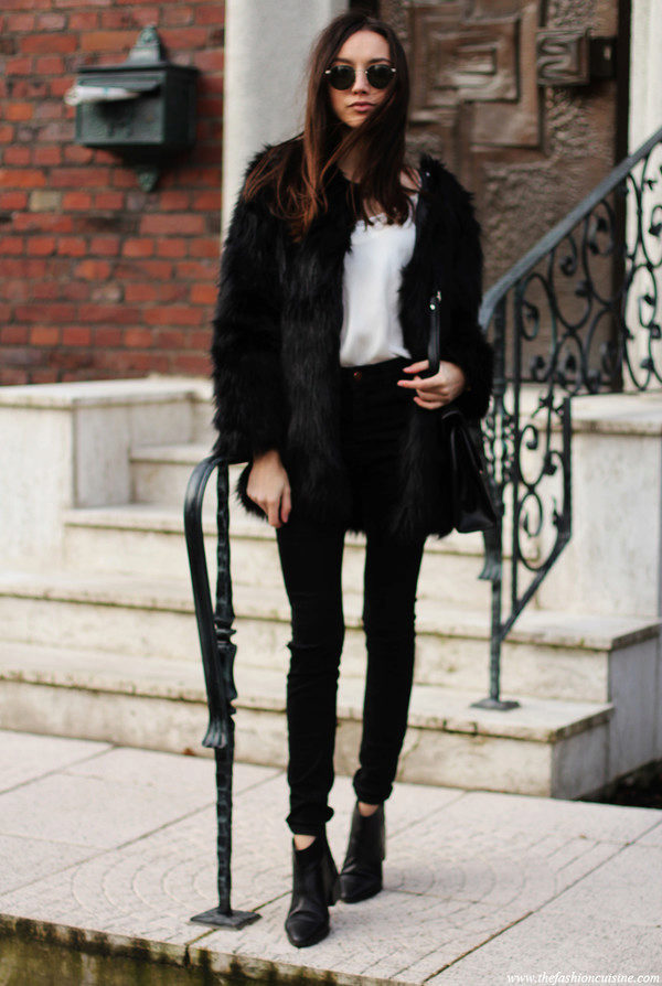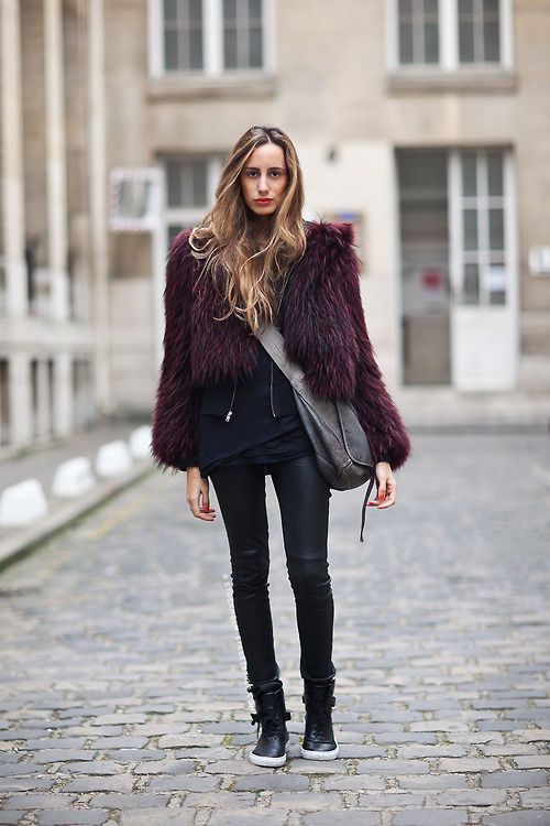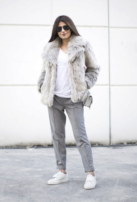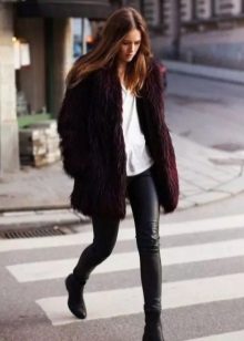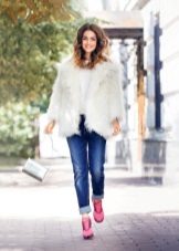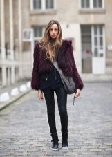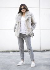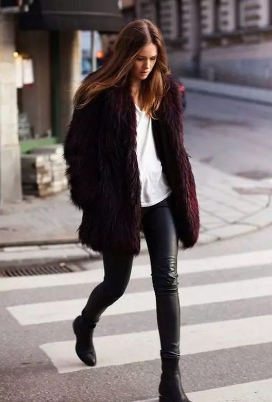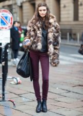 Since a fur coat is in most cases a bulk item, skinny jeans or tight-fitting and straight pants will be the best choice for it. If you want to create an extraordinary and bright image, then we recommend to consider a flared or shortened version of the pants.