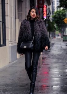 When choosing shoes to a shortened fur coat, you need to build on the overall style of the ensemble. In a classic image, high boots and ankle boots with heels would be appropriate, casual shoes would suit perfectly on flat shoes, and in modern overseas, by the way, both sneakers and lace-up boots.