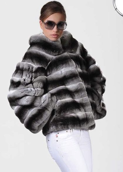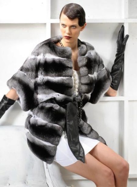 A chinchilla bat coat with long gloves is an excellent option for an evening out. Such an ensemble will look great with an evening dress, and with an elegant trouser suit.