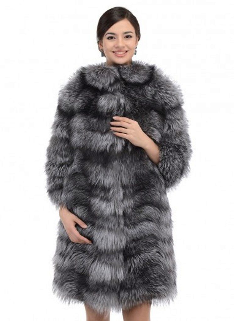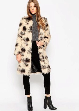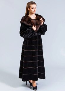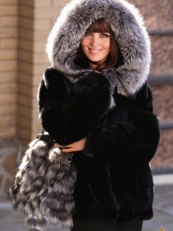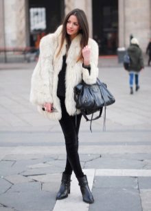 An extremely interesting model may be a dark-colored fur coat with a voluminous collar. In combination with skin-tight black leather pants, this maxi-length fur coat looks extremely luxurious and bold. The image can be complemented with high-heeled shoes and a bag with a short strap.