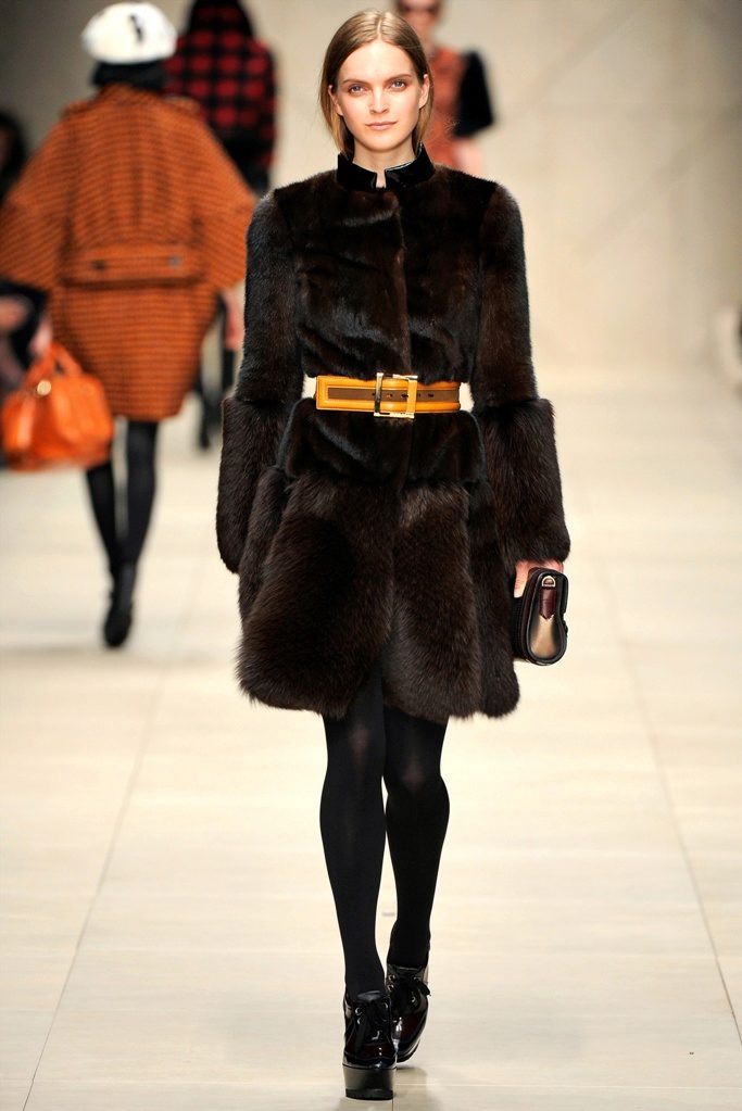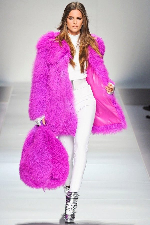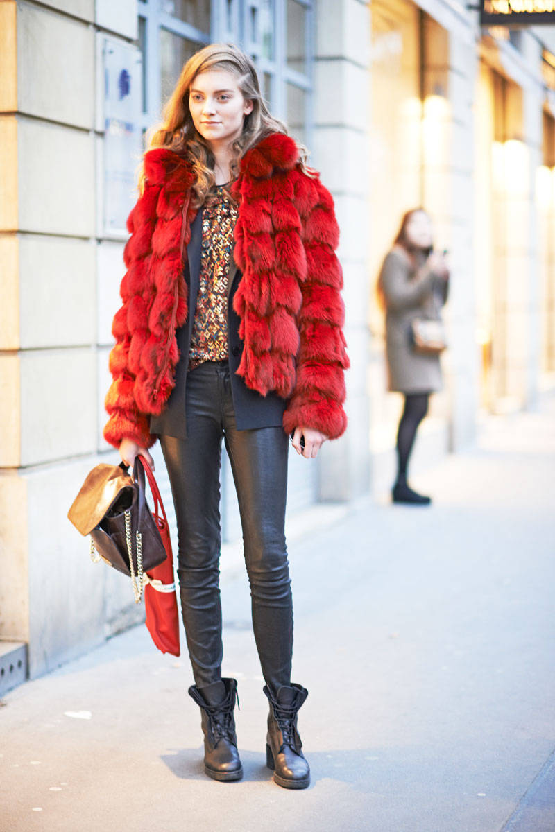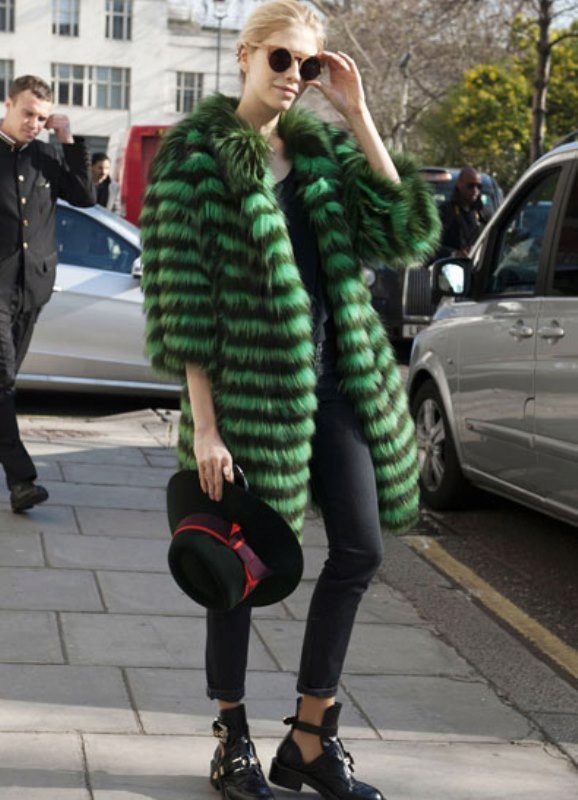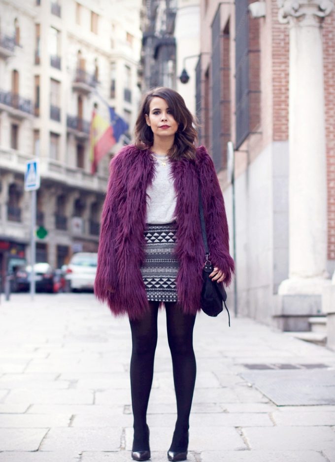 To create a more elegant look, attention should be paid to a mid-thigh length fur coat, complemented by large buttons.