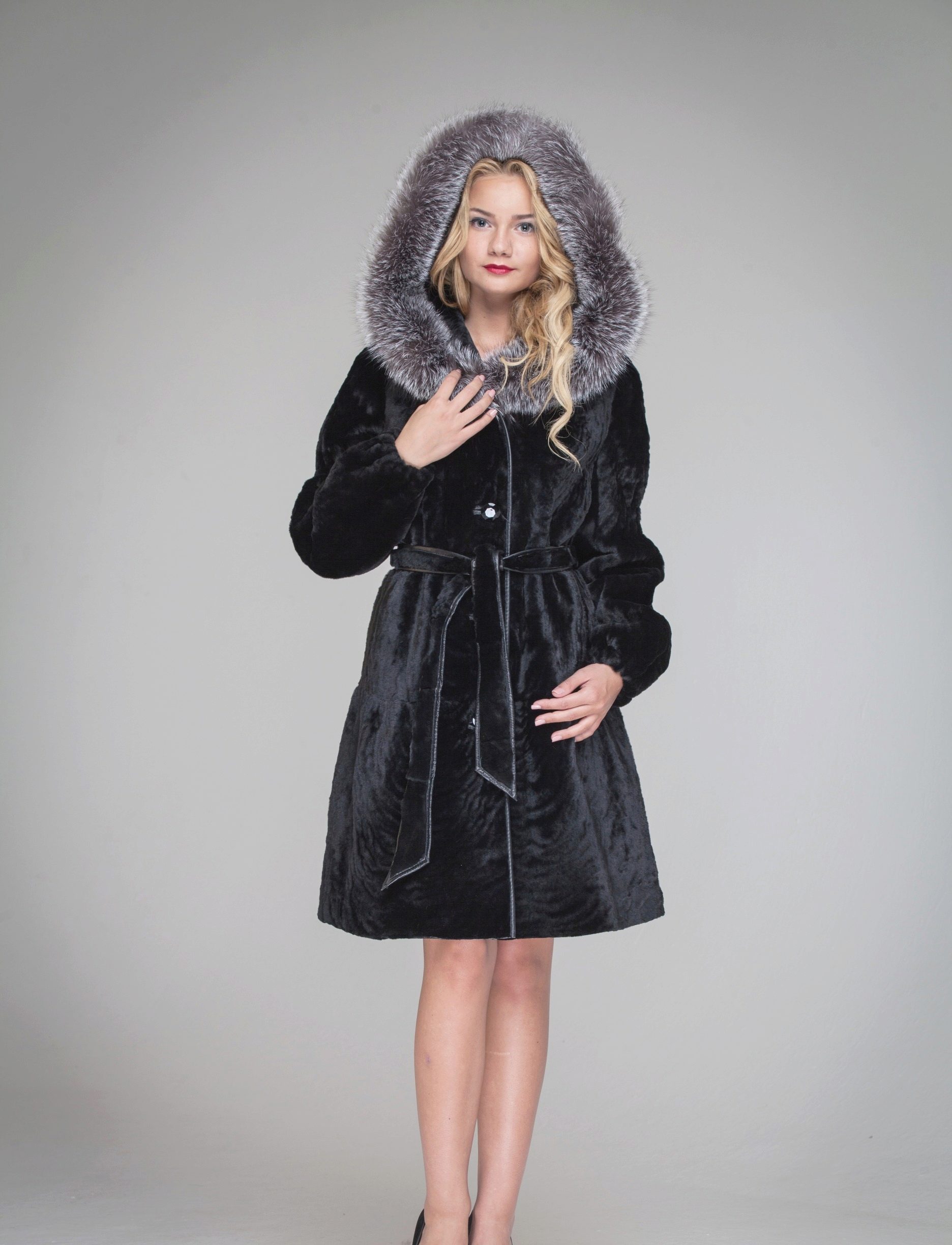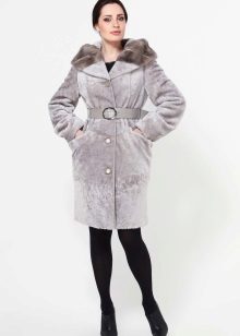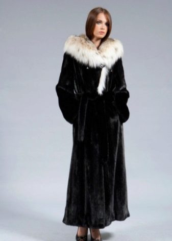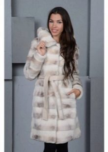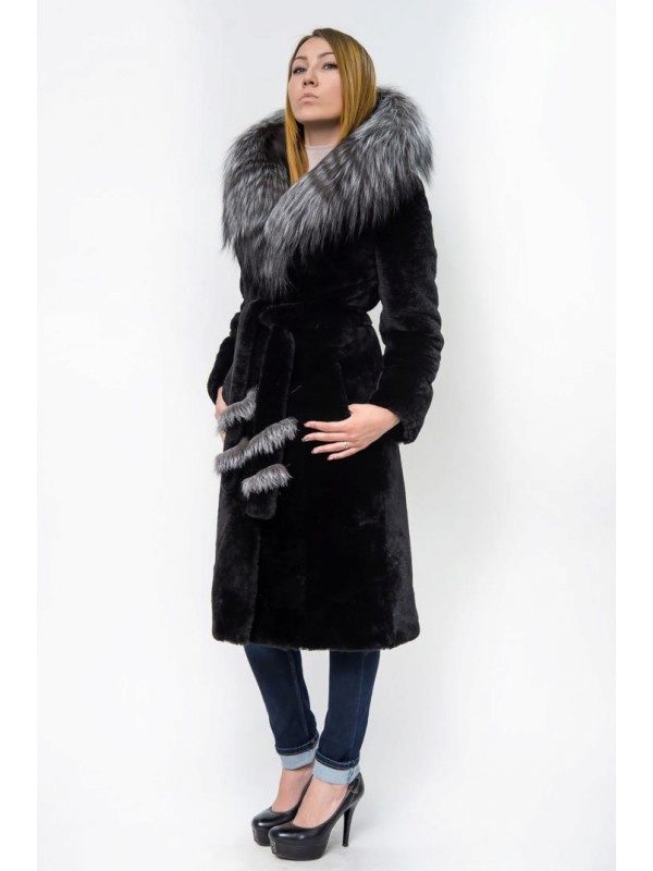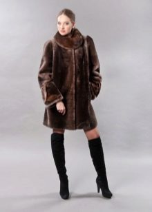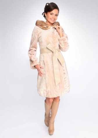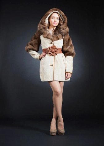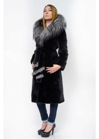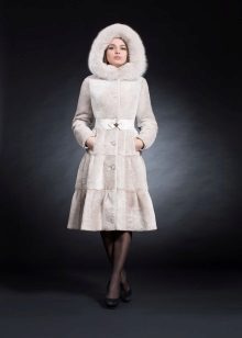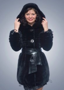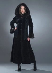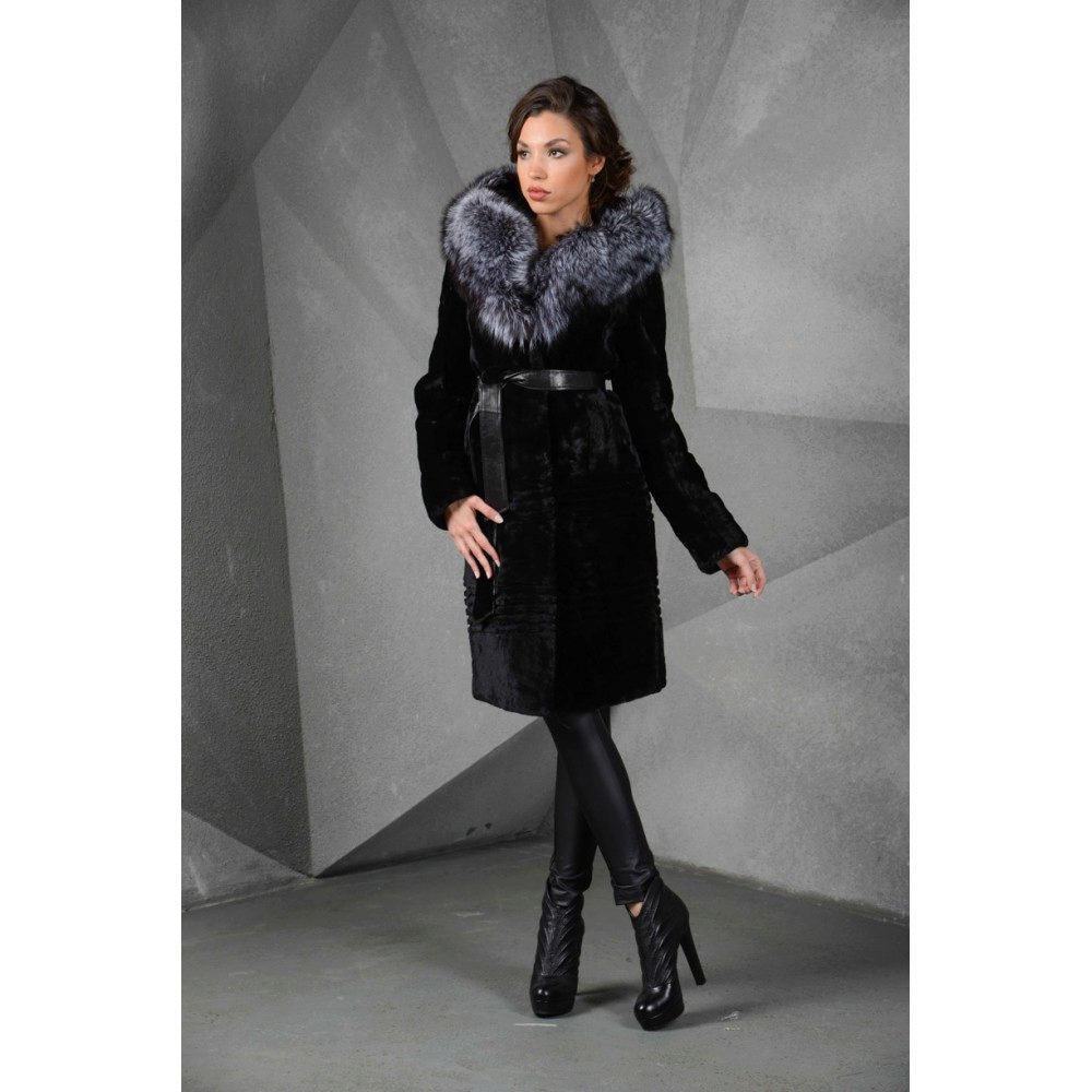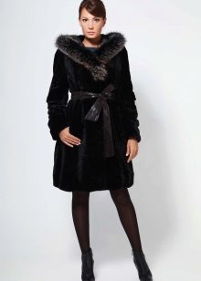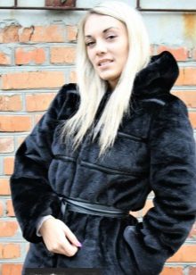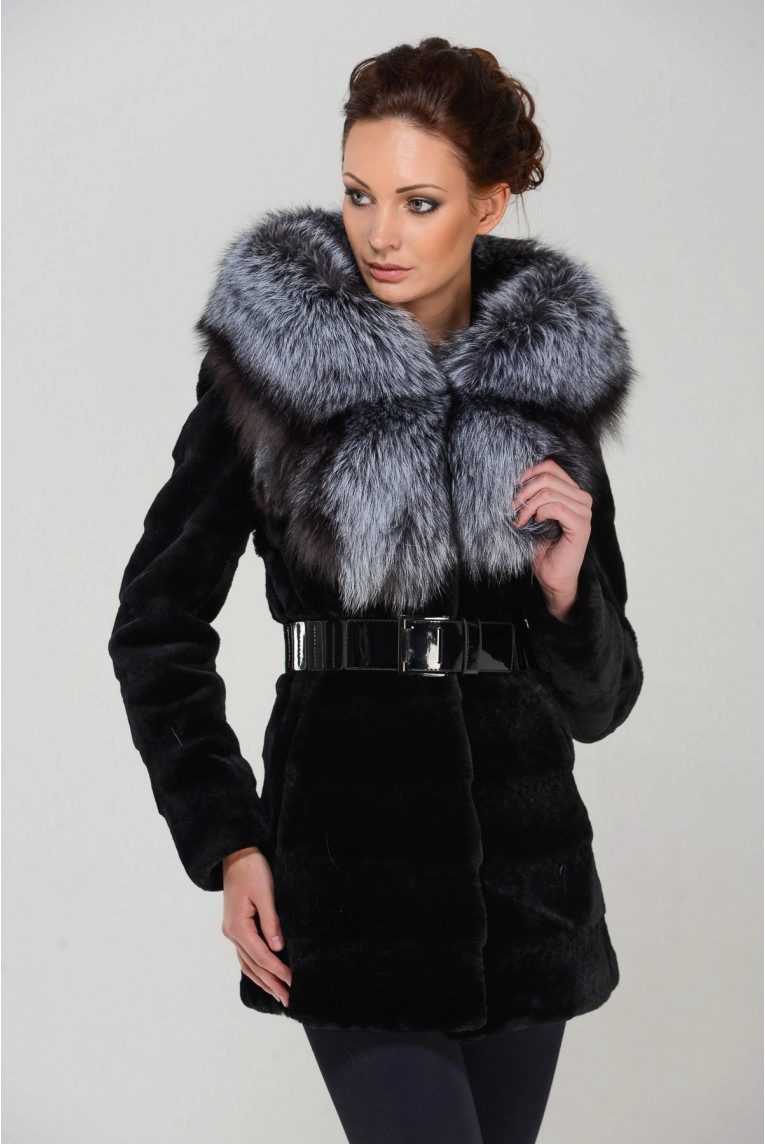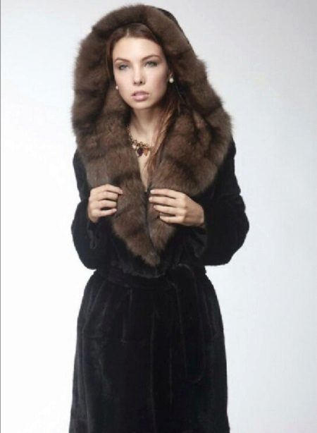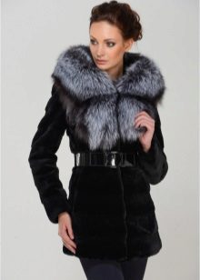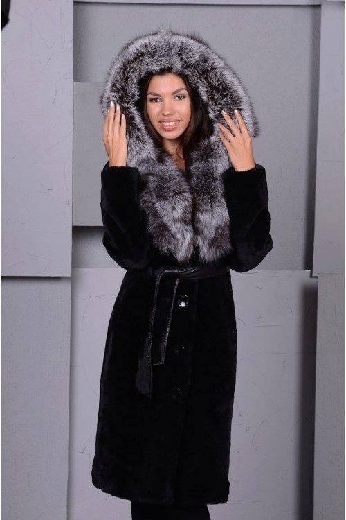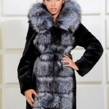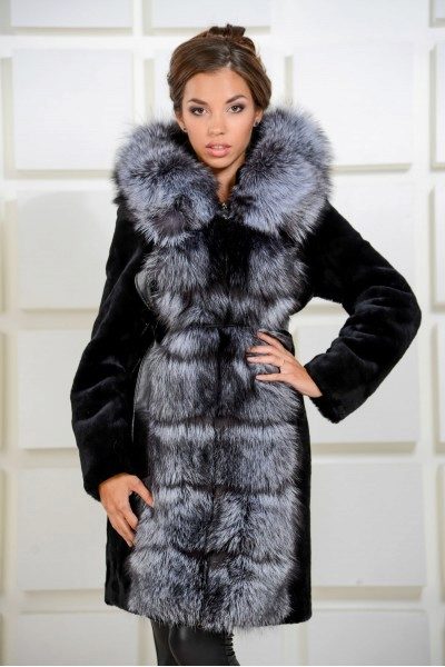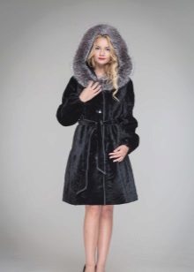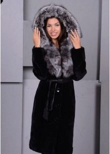 - Combined fur coat. In this case, the hood is made of silver fox, the rest of the product is made of muton. It looks original and beautiful, this style will appeal to ladies who do not like to wear hats.