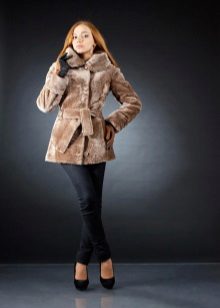 - Short fur coat A great option for auto-lady or for a secular exit. Such a fur coat involves elegant accessories and shoes made of noble material - suede.