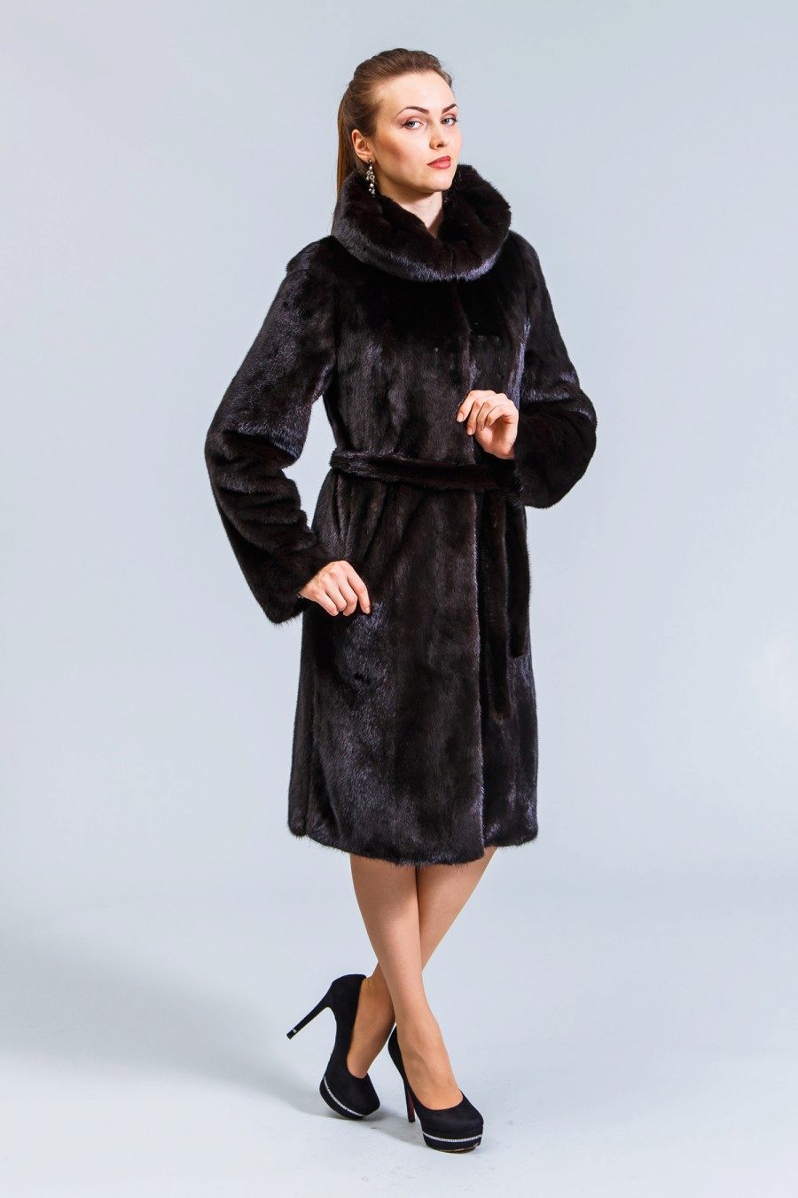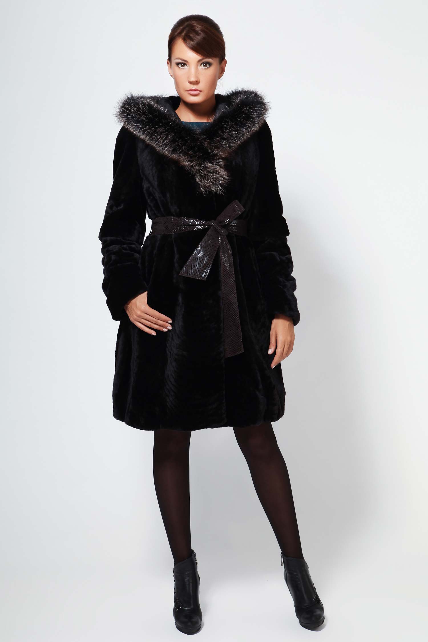 A black fur coat with a leather belt will add some charm to your boring everyday life. A great option for every day, which will sparkle with new colors thanks to bright accessories.