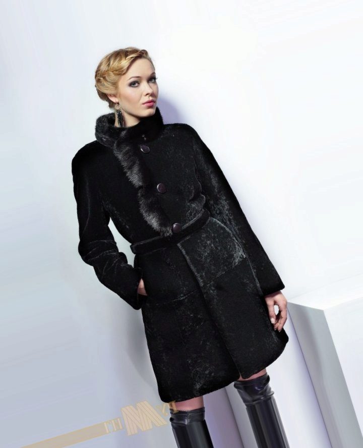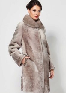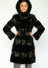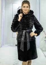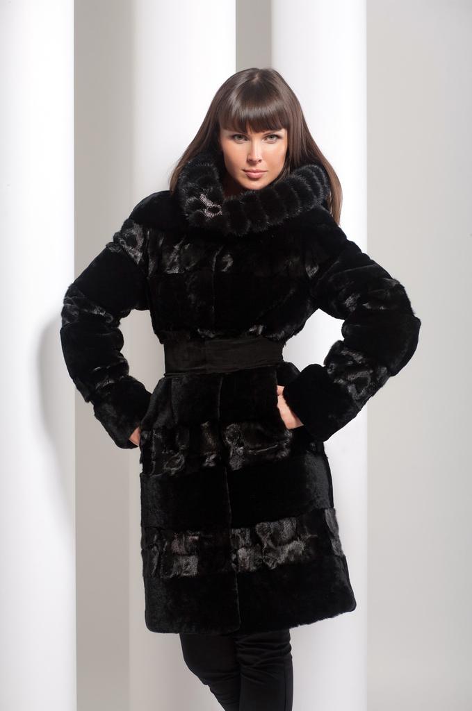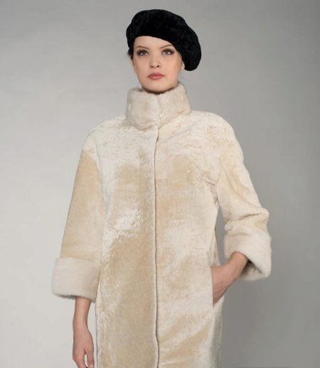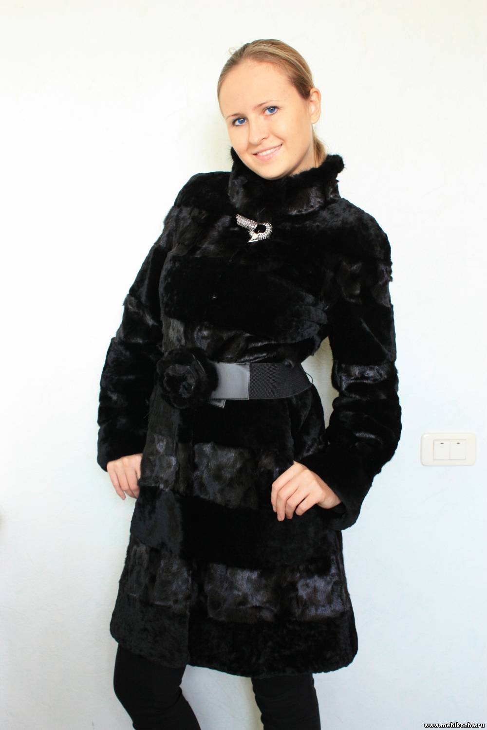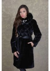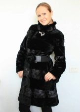 The most common color of a fur coat from a mouton is black. With a mink finish, due to its special shine, this coat looks very stylish and expensive. No less luxurious look white and cream. Also quite interesting coat "cross" with the alternation of light and dark stripes.