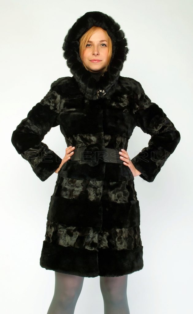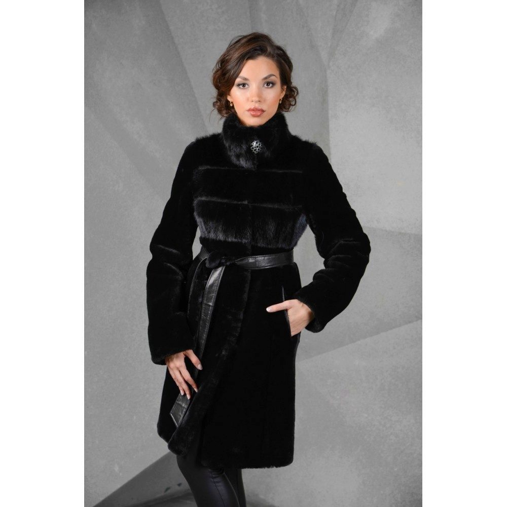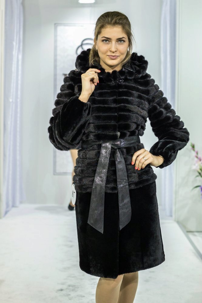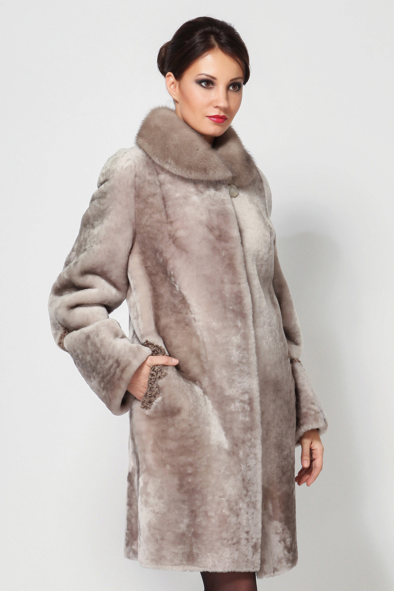 The most common color of a fur coat from a mouton is black. With a mink finish, due to its special shine, this coat looks very stylish and expensive. No less luxurious look white and cream. Also quite interesting coat "cross" with the alternation of light and dark stripes.