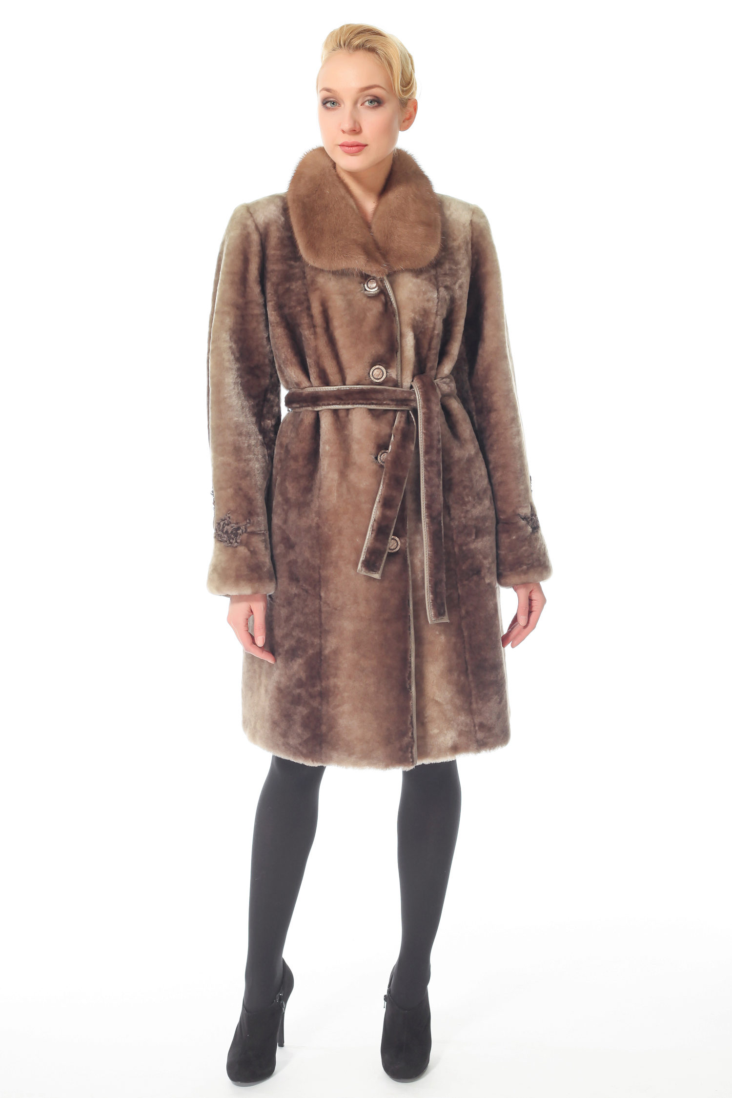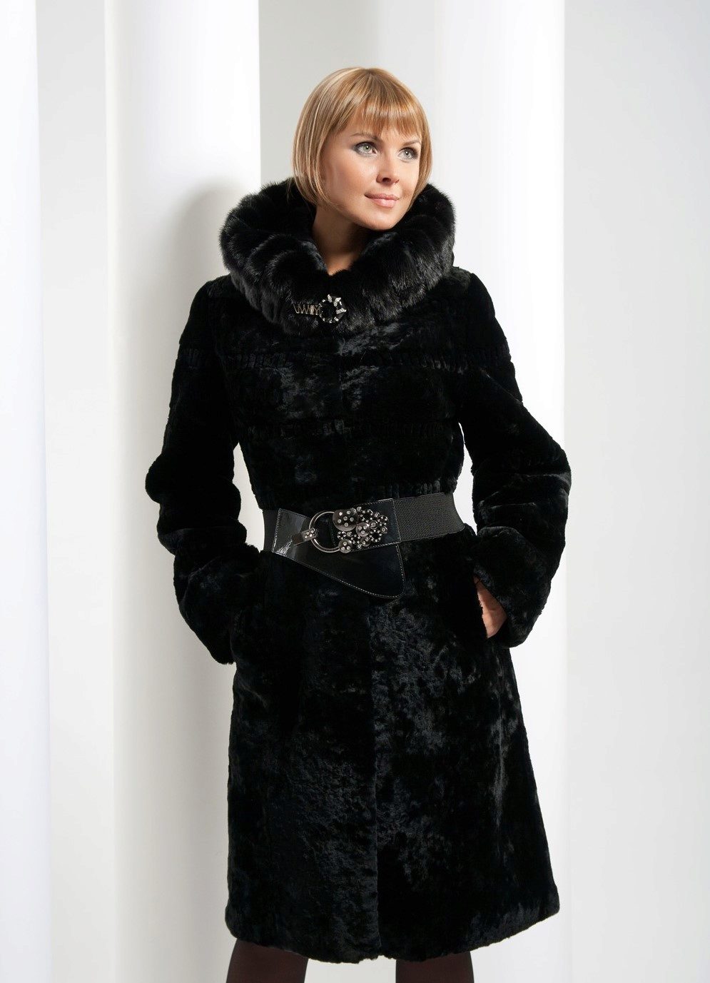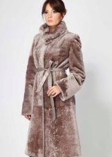 Mouton coats can be straight, fitted or trapezoidal silhouette. The most common straight model of medium length under a leather belt. Also, there are also quite original models of a bat or a balloon. The sleeves of all models, as a rule, are straight or slightly flared. Following the fashion trends sewn many models with a three-quarter sleeve.