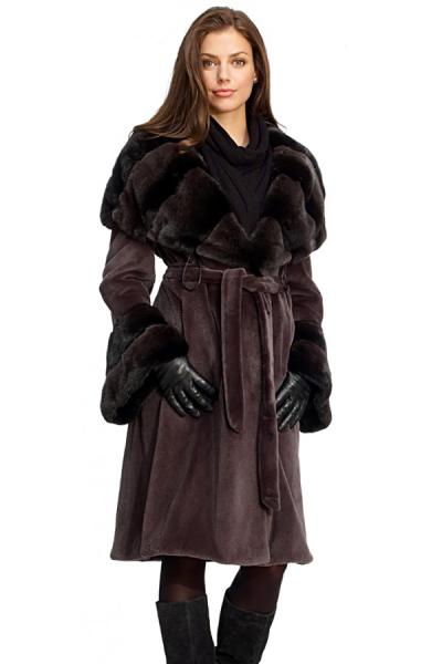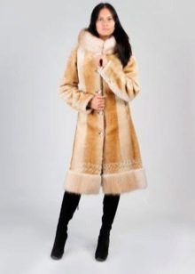 The sleeves can be decorated with a classic stripe along the edge or, conversely, three-quarters consist of mink fur. Imitation of a double sleeve looks very stylish: long with a short flared three-quarters, made of different furs. Mink trimmed stand-up collar looks very elegantand a turn-down collar or hood is luxurious. Also a lot of fur coats, made fashionable "cross".