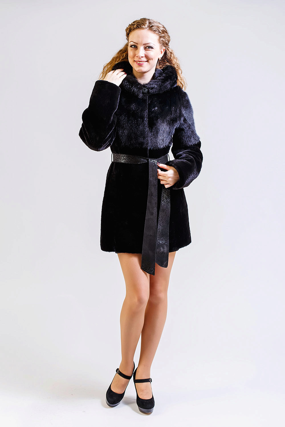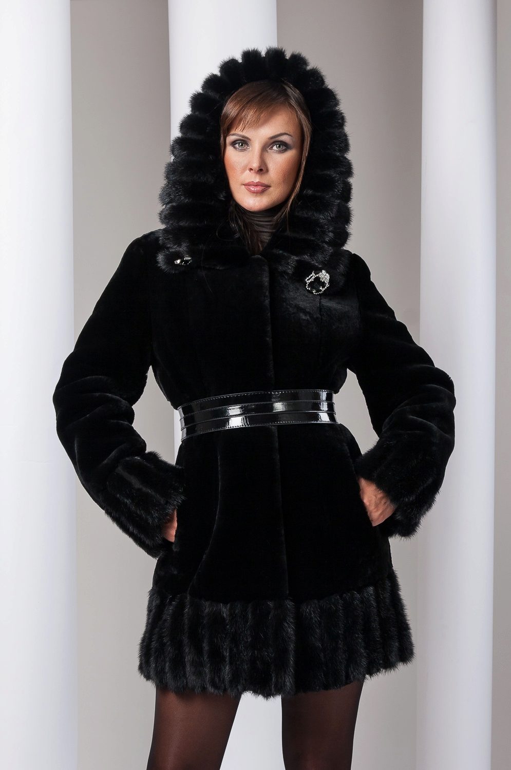 Among the features of a fur coat from a muton, one can distinguish aesthetic qualities, which allow you to combine it with different types of fur. Since it has a uniform pile structure and uniform color, almost any fur, including mink, will be suitable as a finish.