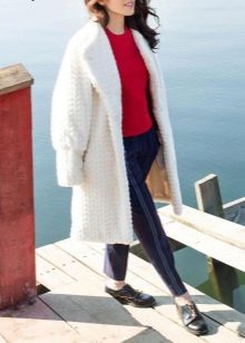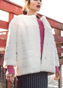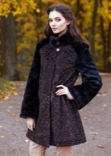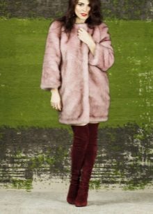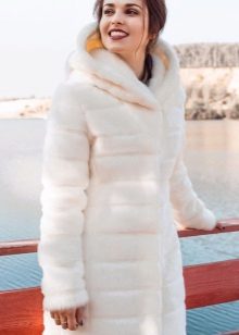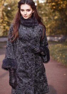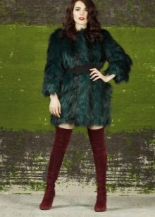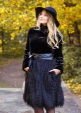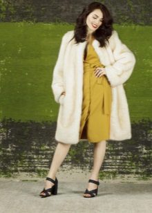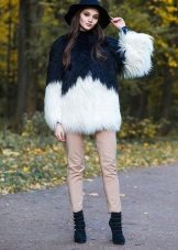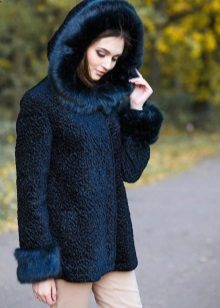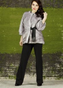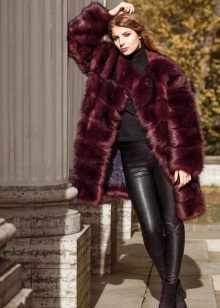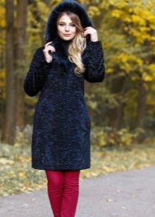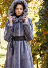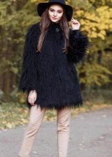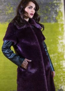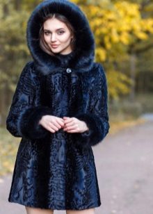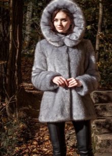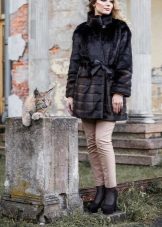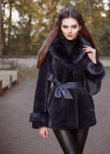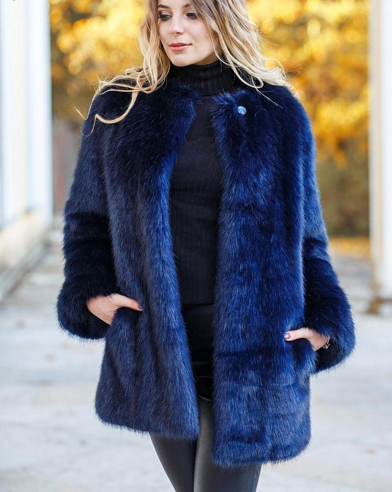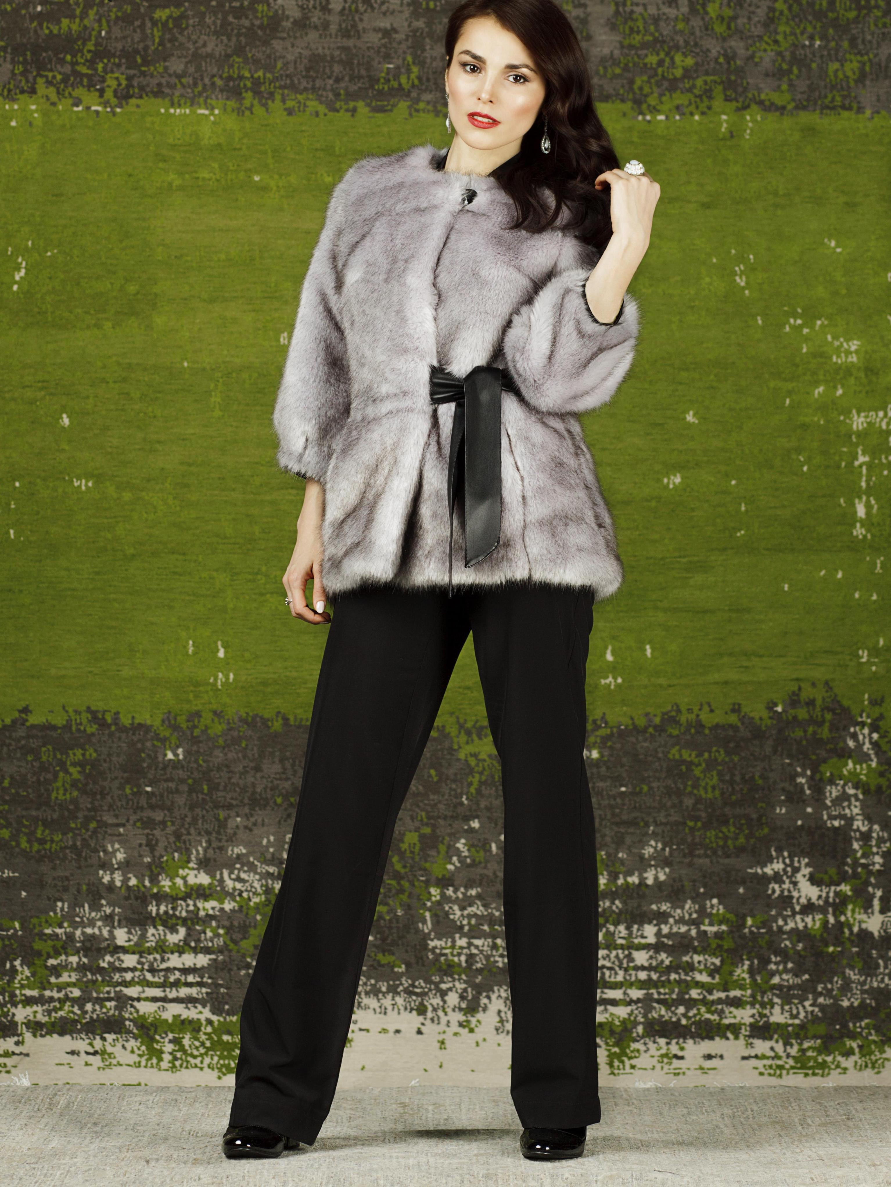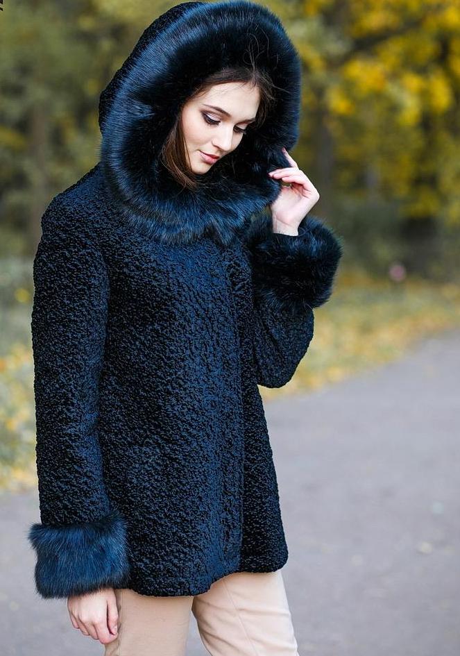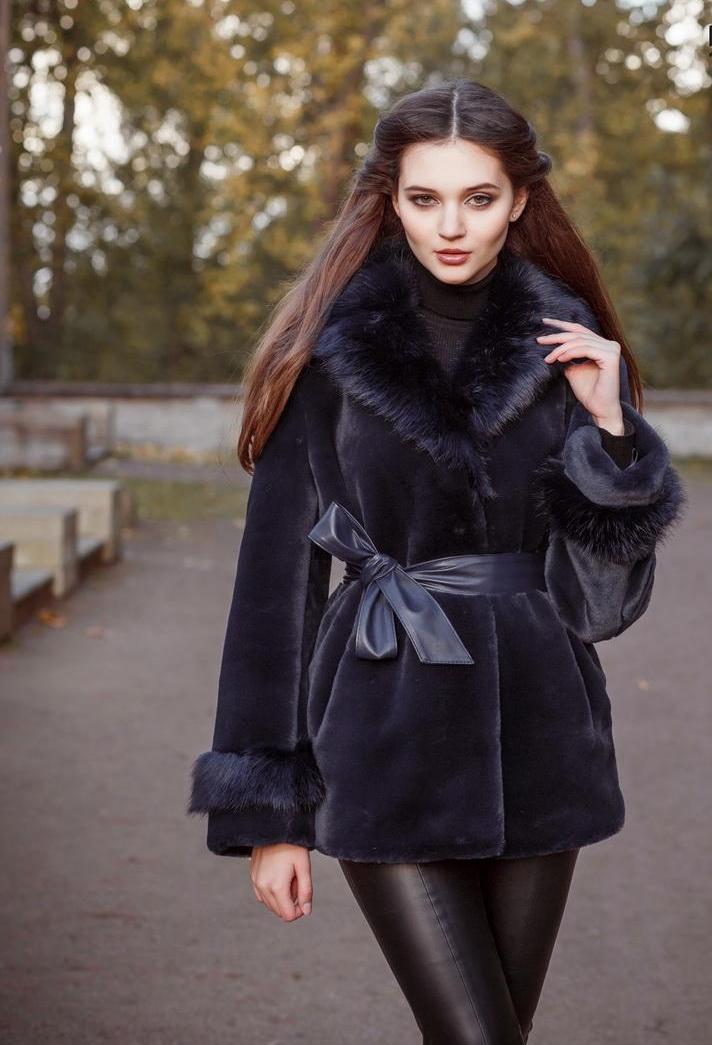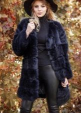 A fur coat of non-trivial blue under fur of arctic fox length slightly below the hips can be easily combined with pants and turtleneck with a high collar. Light overlaps of fur and flowing silhouette of a fur coat will add charm to its owner. This image will be appropriate in the cold autumn season. Attention should be paid to the fact that such an image is ideal, both for evening evening exits and for everyday wear. Thanks to the insulation used when sewing the coat, its owner will be able to translate their ideas into practice in almost any weather.