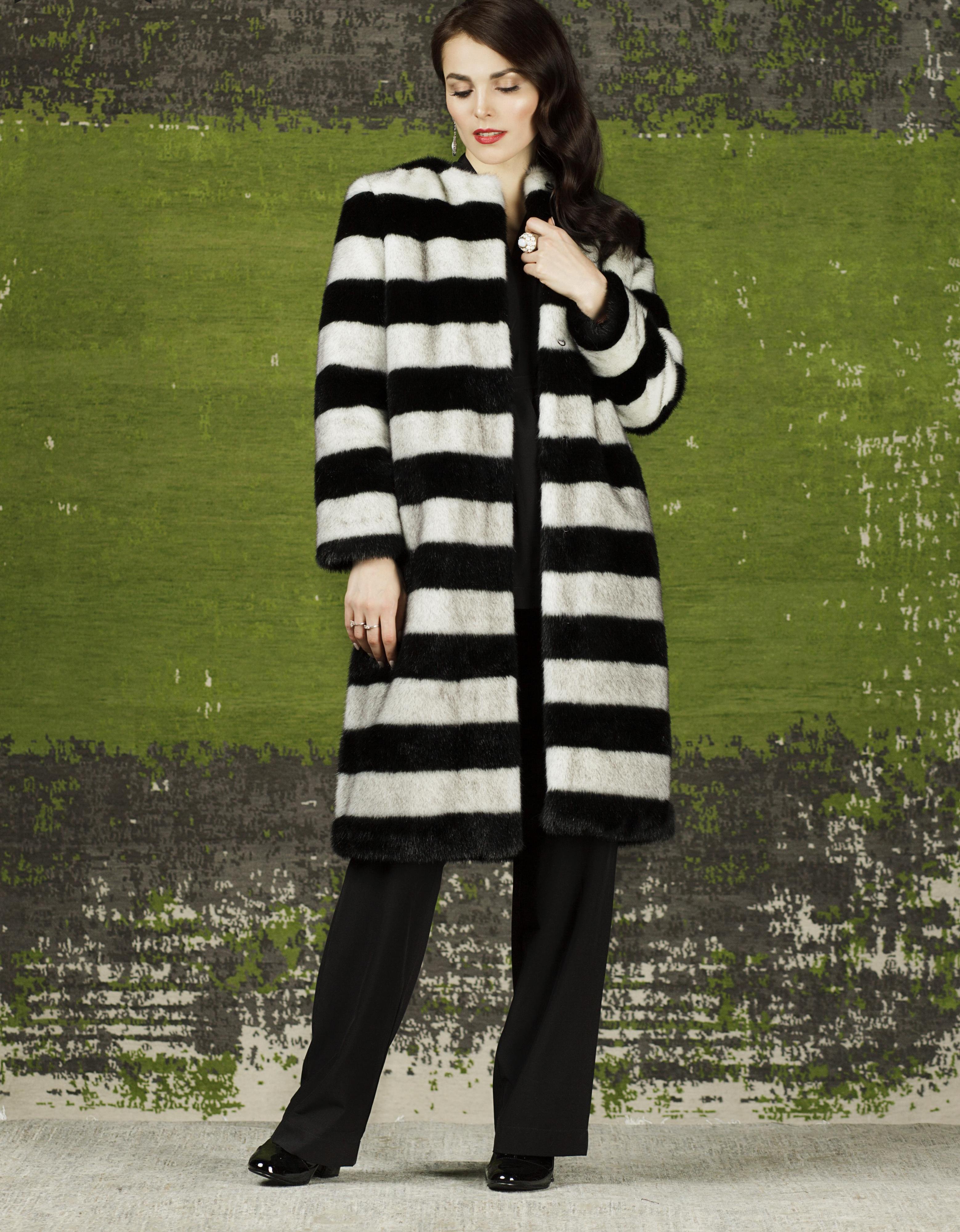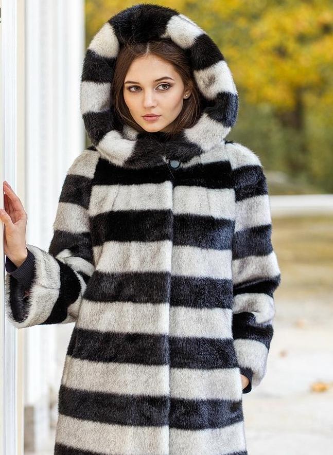 A wide response among the customers of the store found the factor of the lack of victims in the form of dead animals with a rather large selection of “eco-fur” varieties. Fur “Only Me” has many variants of execution - from the classic mink to non-trivial combinations and combinations of various textures and colors., including horizontal stripes of contrasting colors (dark and light shades) that are at the peak of popularity.