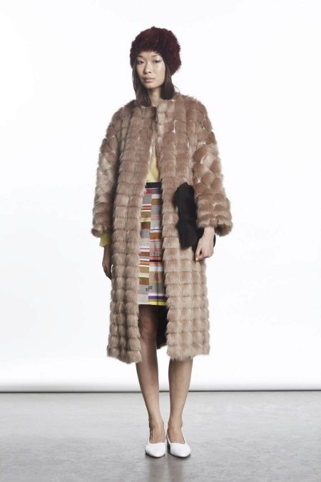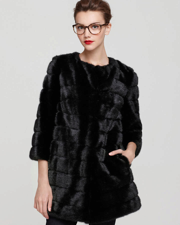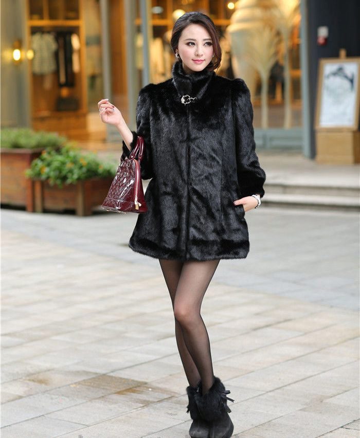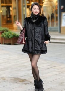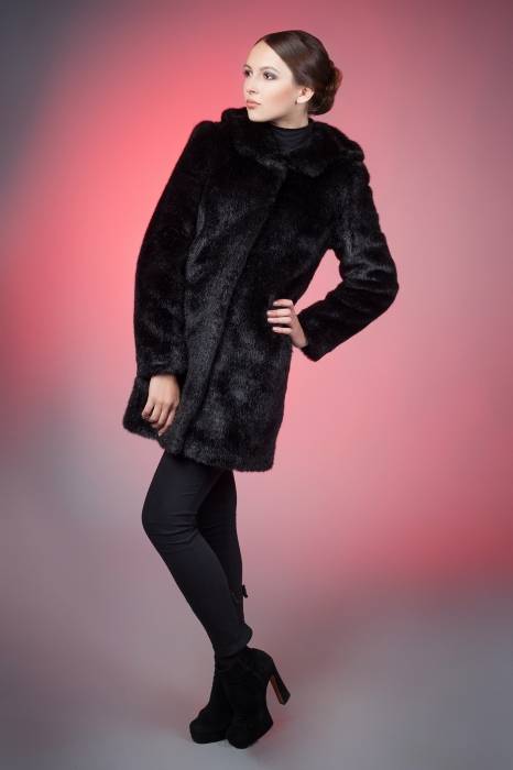It is not surprising that fur coats made from fur imitating mink are sewn in the same styles as real mink. The girl can only choose a model and colors.