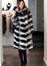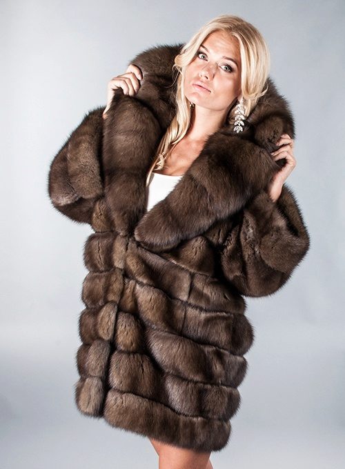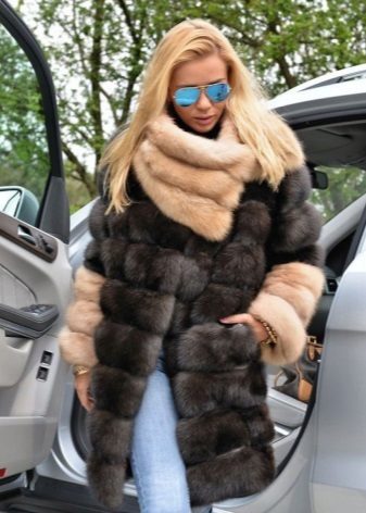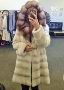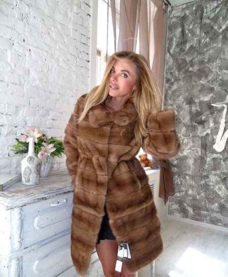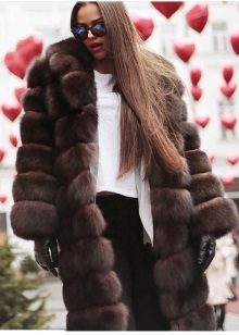 When choosing a coat of cross, you need to pay attention to how she sits on the figure. Usually there are no complaints. The model can be with a volume hood or on a belt. Thanks to the successful cut of the fur coat, the fur shimmers very beautifully, does not visually place accents along the line of the figure. A fur coat with a transverse cut looks more luxurious than a longitudinal model.