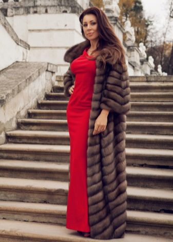Longitudinal coats are no less elegant than the transverse. However, when choosing a model should be guided by the nuances. Of course, the coat in the first place should just like a woman. The classic version of the longitudinal fur coat on the floor looks elegant and expensive, if she is dressed in a slender leggy girl with a beautiful posture. Such a fur coat has a perfectly smooth uniform surface and an equally equivalent color.