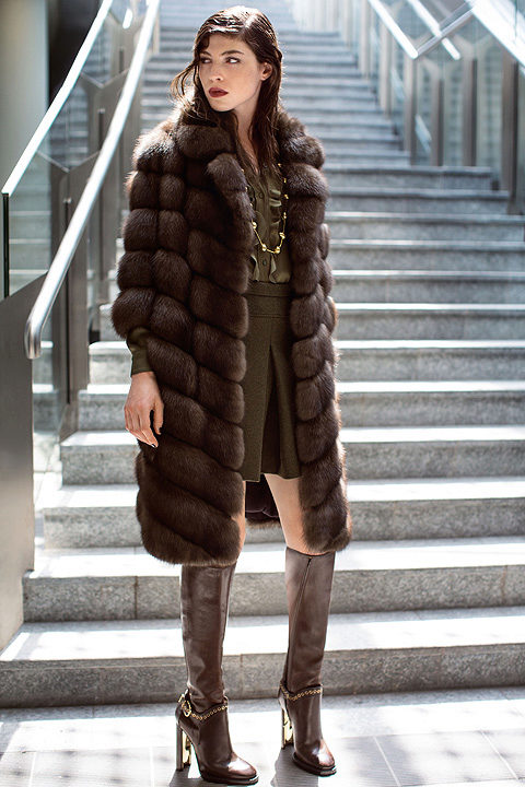 All these models are united by the general quality - a special cut in the form of transverse stripes. The styles of fur coats across differ in color and style.