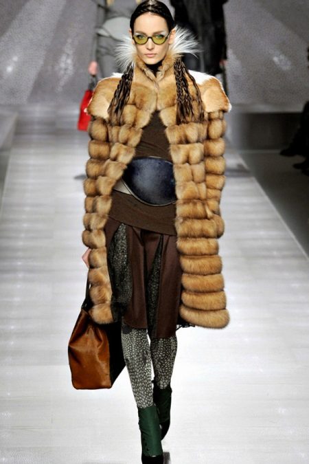 Also interesting are models of coats with fur inserts, sewn on the principle of cross-cut. Although fur coats will still be called transverse, even if the stripes on the model are arranged “herringbone”. In addition, it can be models of strips with long hair or with cropped fur. Options fur can alternate. Each type of fur has its own texture, and transverse stripes can start from the waistline.