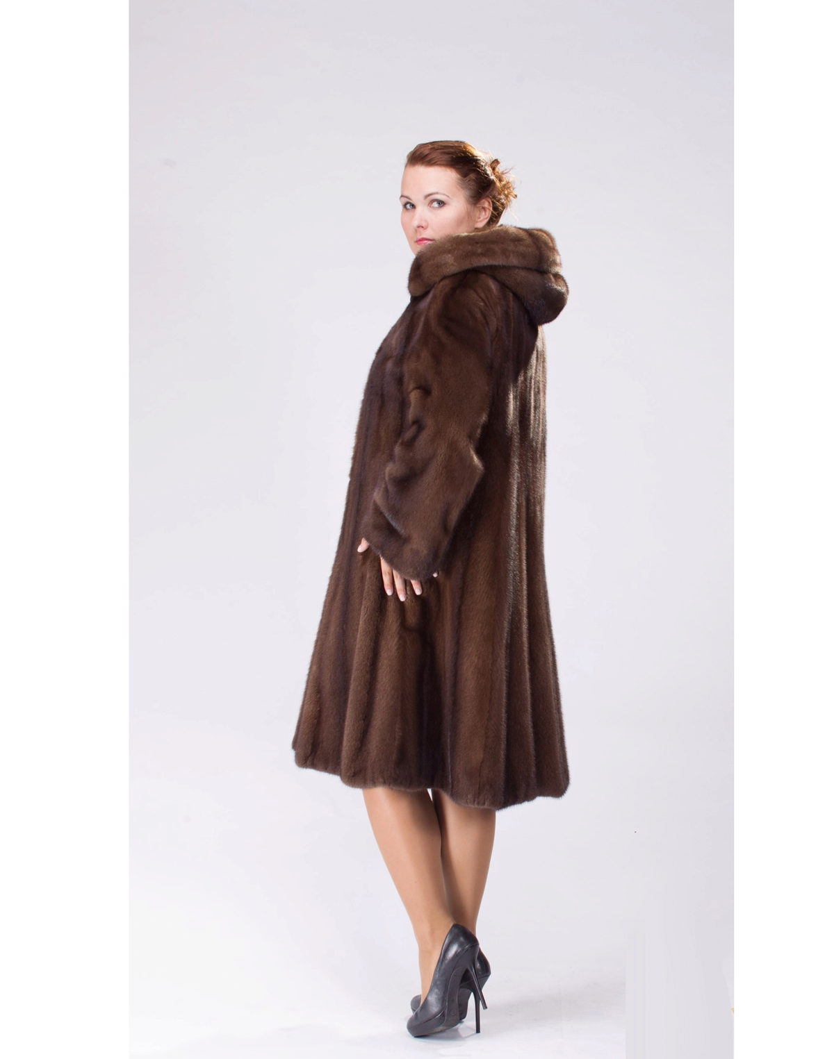 The fur coat of the “ballet” model is a classic representative of a trapezoid cut. The product has a flared bottom, starting right from the shoulder line.