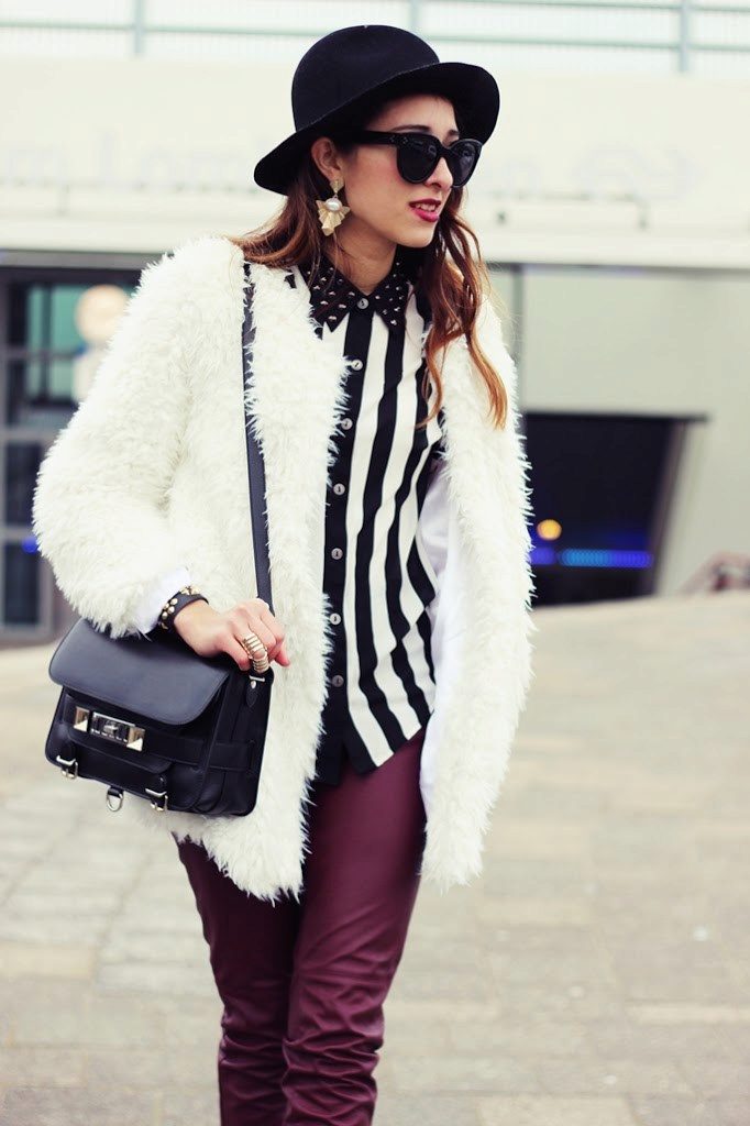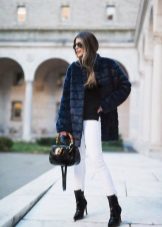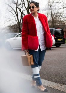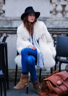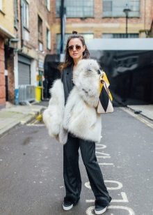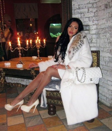 Therefore, a white fur coat complete with a white handbag made of leather or expensive fur will emphasize the refinement and sense of taste of their owner. In this case, the main thing is not to forget that, unlike the total black image, the image cannot consist of things of strictly white color - it is easy to add contrast with a hat or hat of bright colors and the same footwear.