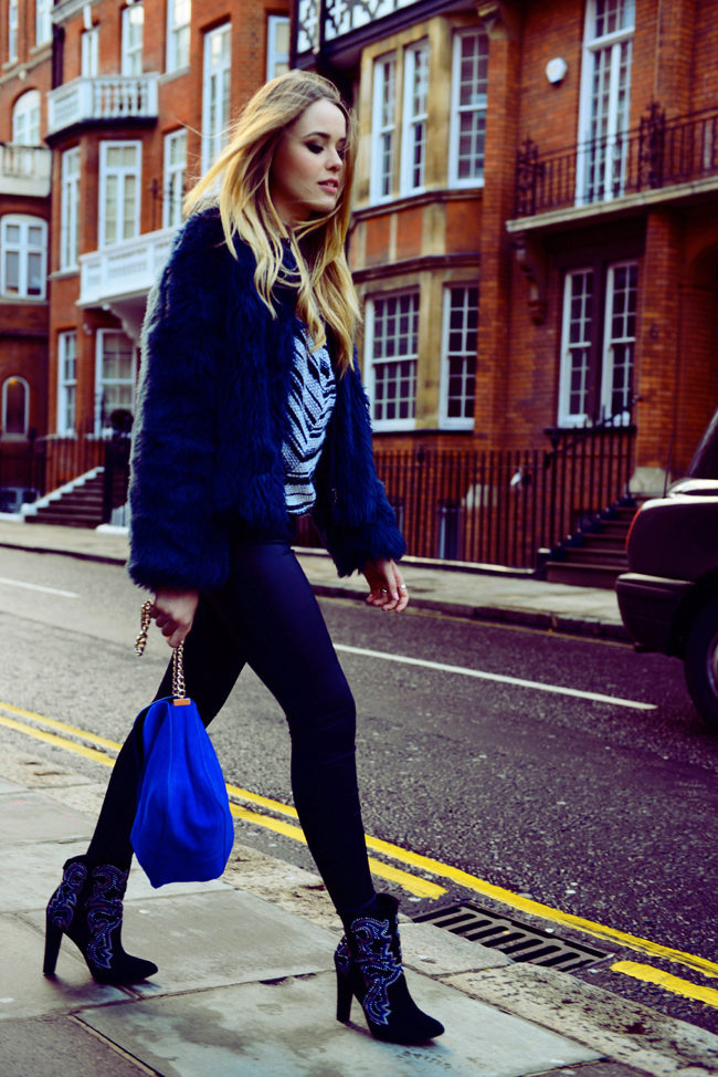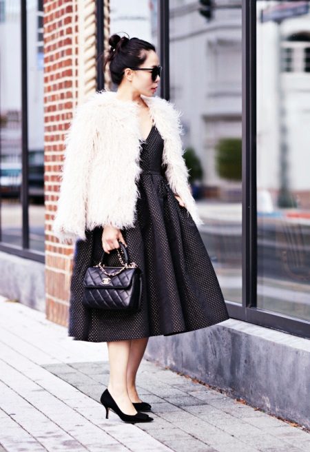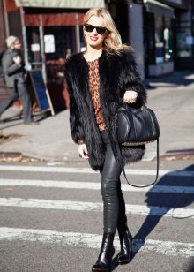 The most safe in terms of consistency of the image and the impossibility of appearing tasteless can be called total black look: a black bag, gloves and boots in combination with a black fur coat. In this case, you need to pay attention to whether the image is not too gloomy - otherwise its owner risks visually adding a few extra years to herself.