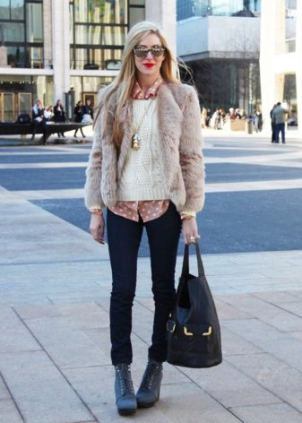 For light-colored fur coats it is better to add a handbag of moderate color. It is desirable at the same time that it is at least one tone darker.