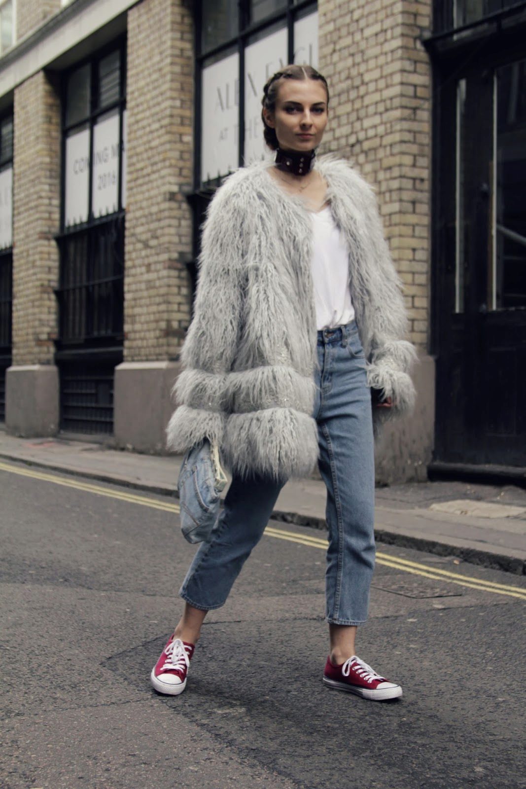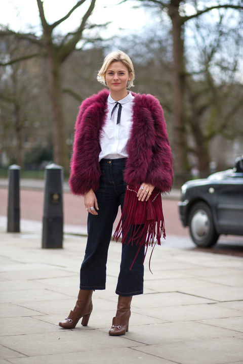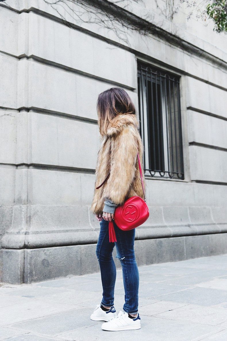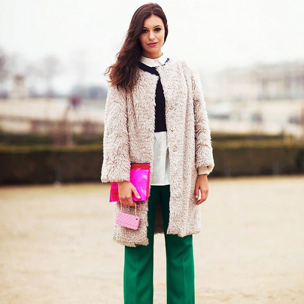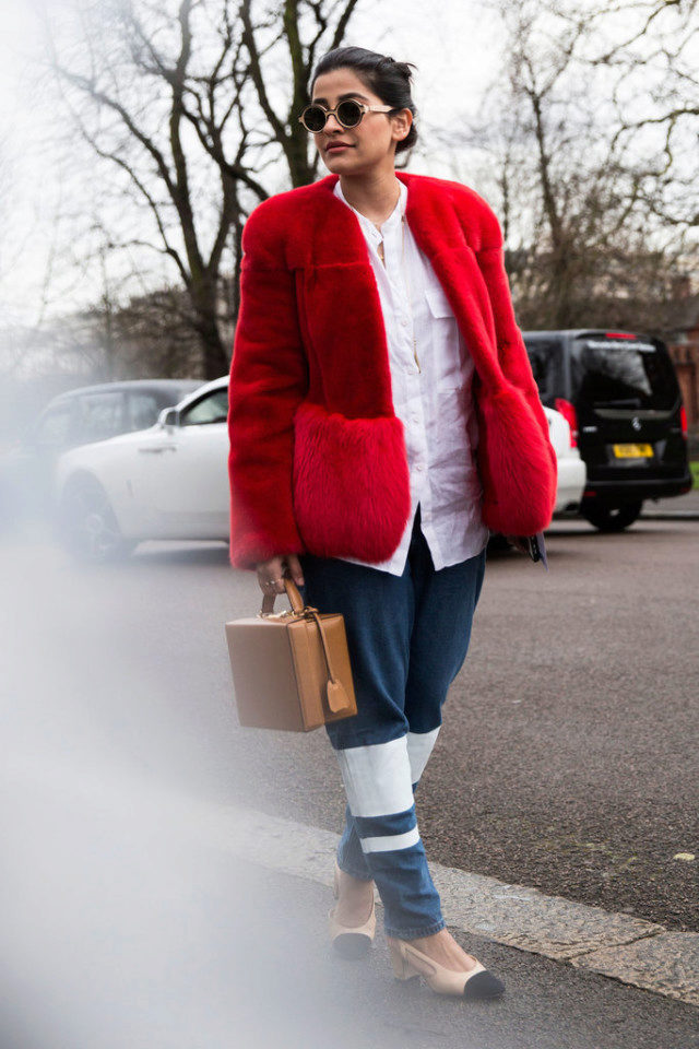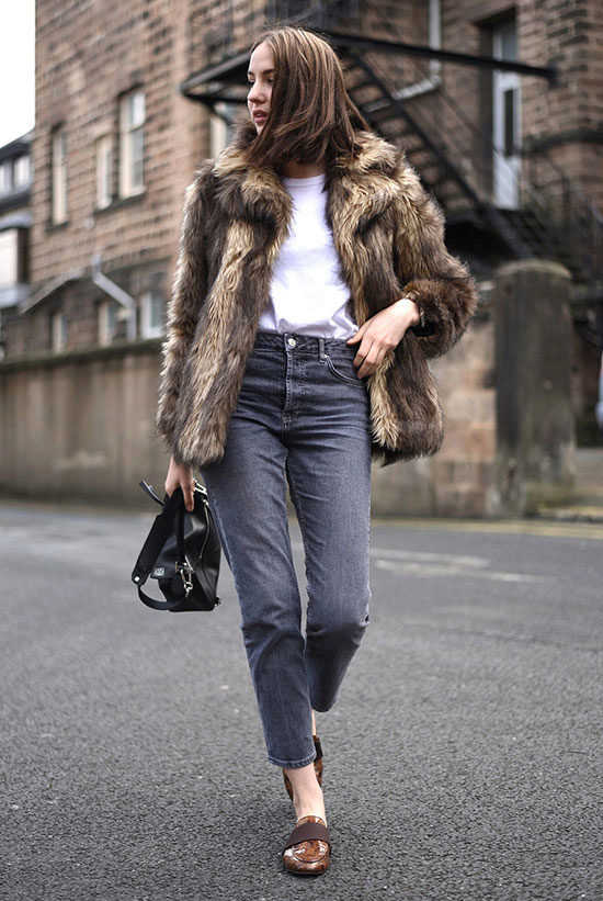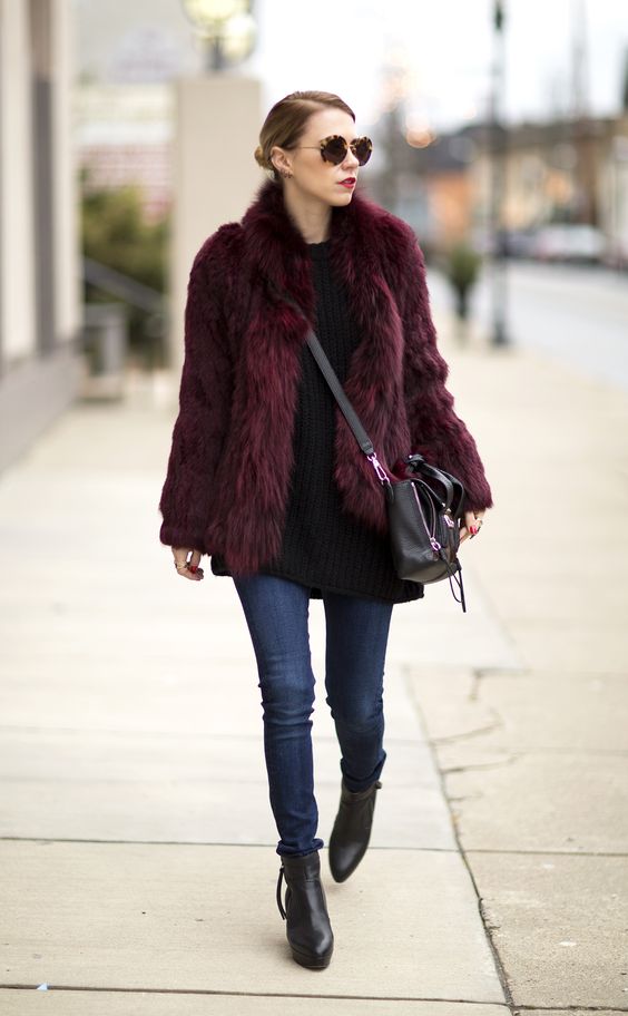 An impudent and freedom-soaked image, the base of which is formed by a fur coat made from mehalamas. A simple gray jumper, classic jeans with an open ankle and an elegant bright handbag with a chain. Yes, combining a bag slung over his shoulder and a fur coat is against the rules. But in this case, the look itself is intended as a stylish rebellion against the system!