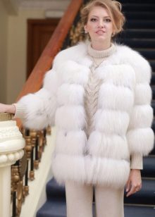 Among the polar fox fur coats - transformers one can often find the so-called transverse fur coats. This name they received due to a special cut. Skins are cut and laid out not horizontally, but horizontally.