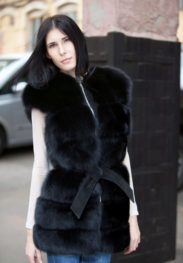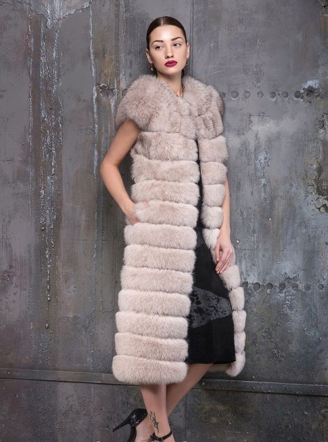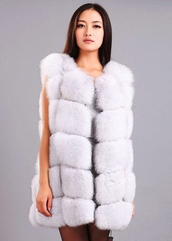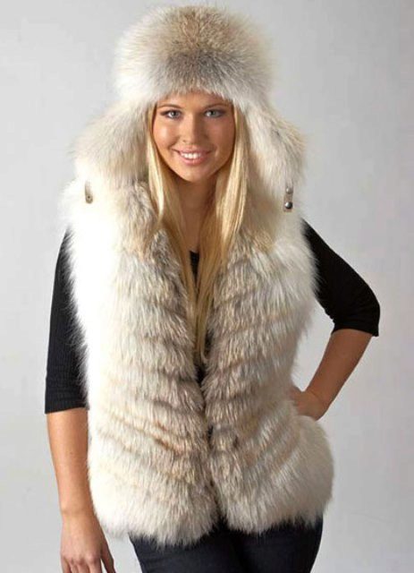 From a fur coat with a removable sleeve it turns out a stylish arctic fox vest, under which you also need to choose appropriate clothing.